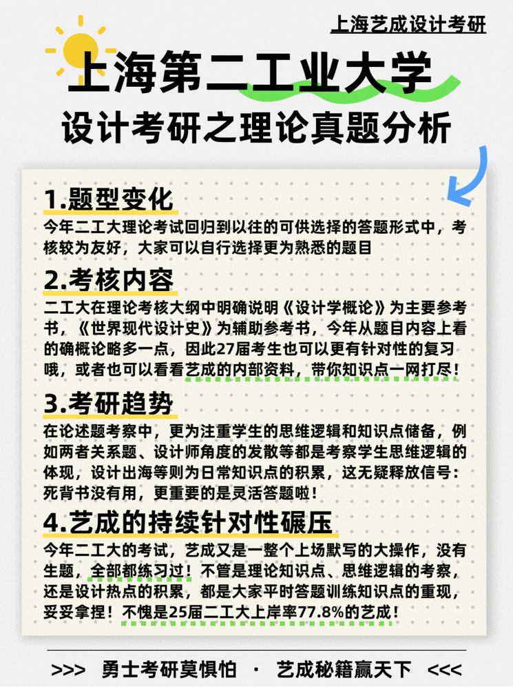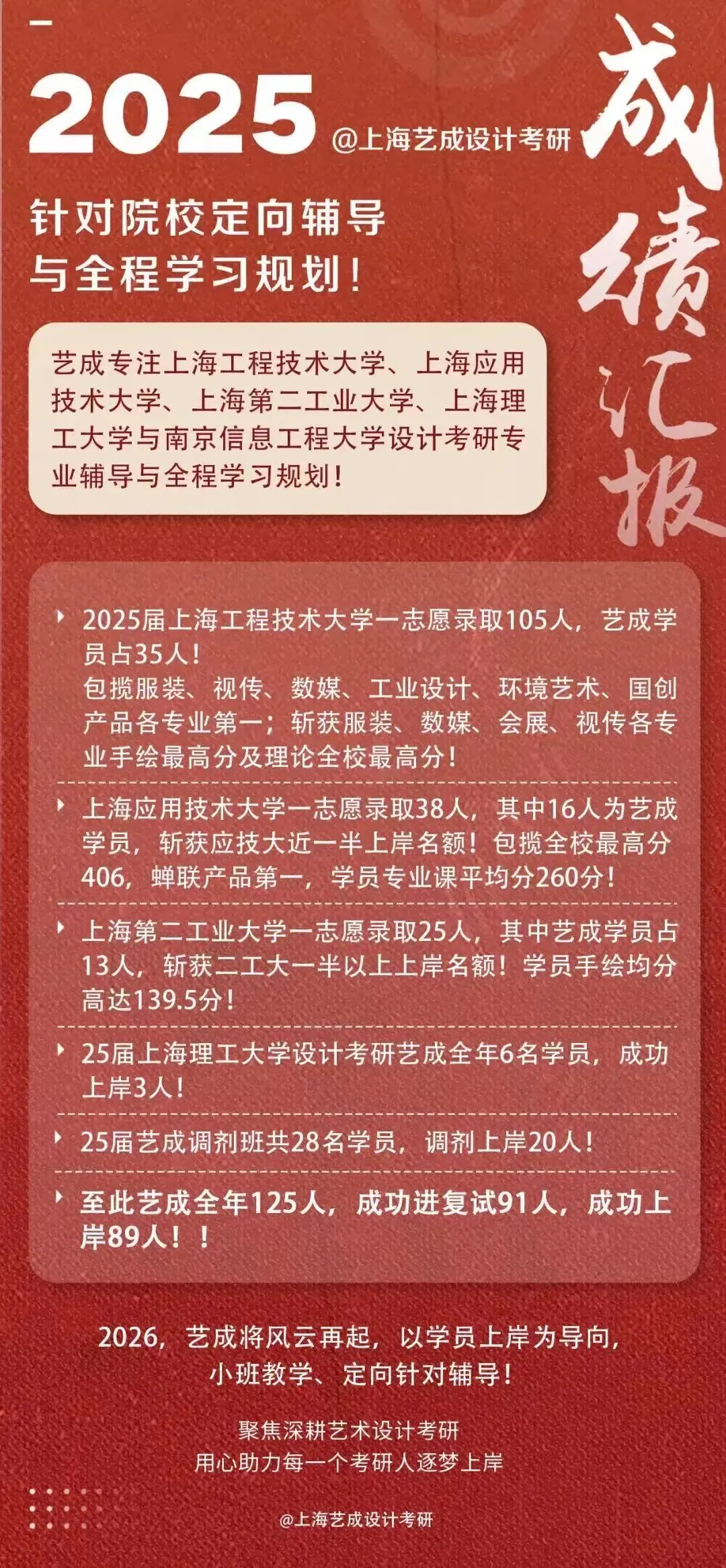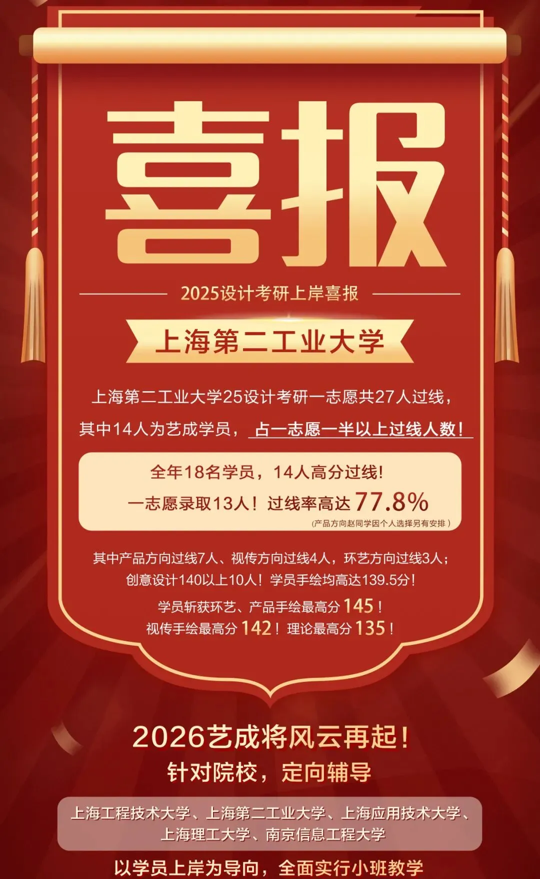 对于上海第二工业大学设计考研的教学,艺成可以说是上岸第一品牌!