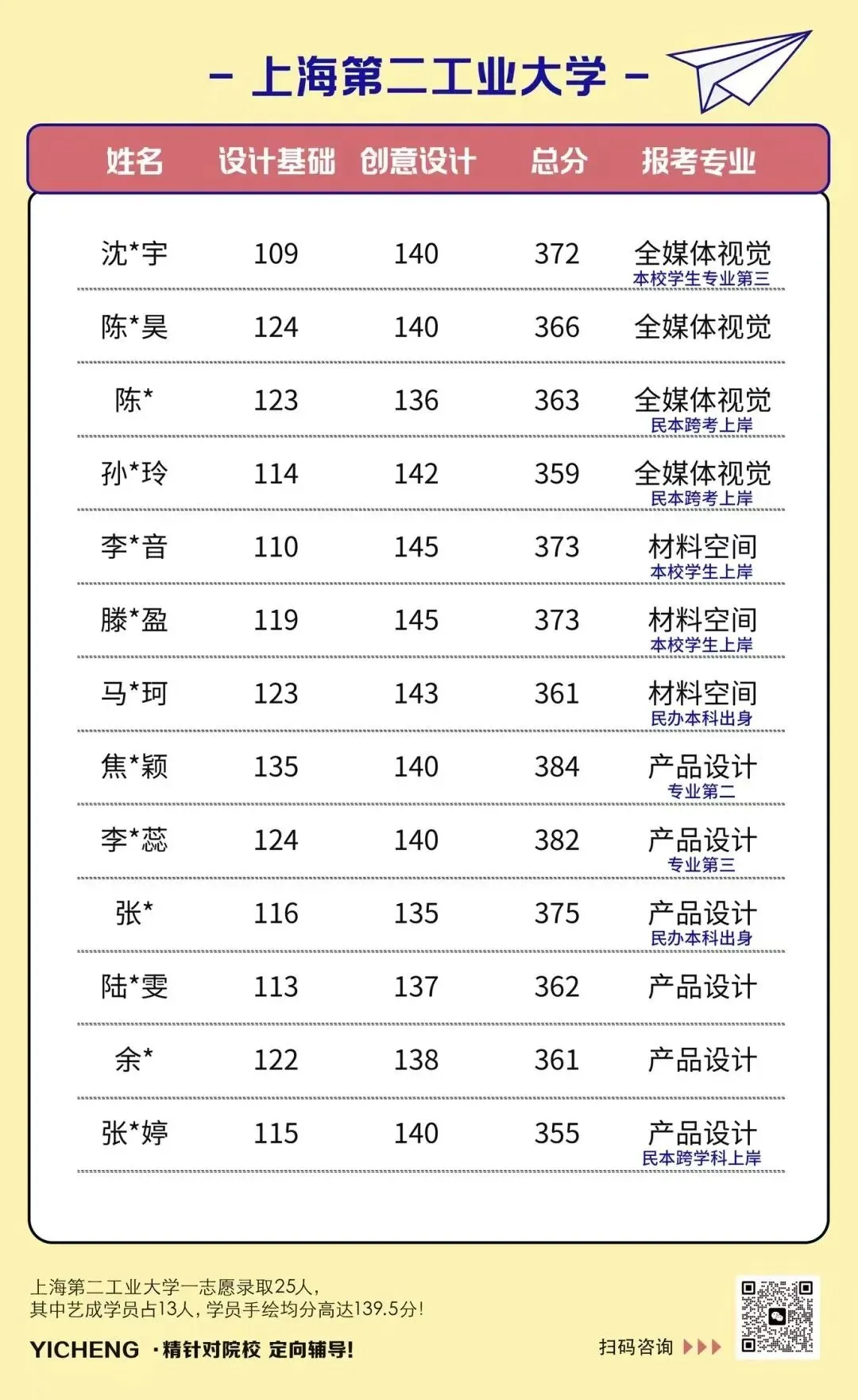 25届上海第二工业大学一志愿录取25人,其中艺成学员占13人!学员手绘均分高达139.5分!