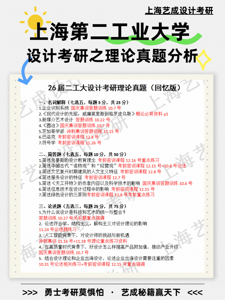 理论两本书太难背?考试不知道重难点?不用担心,艺成整理了独家内部背诵资料,实时更新的超全设计热点,涵盖二工大所有考试内容,让你备考无忧!