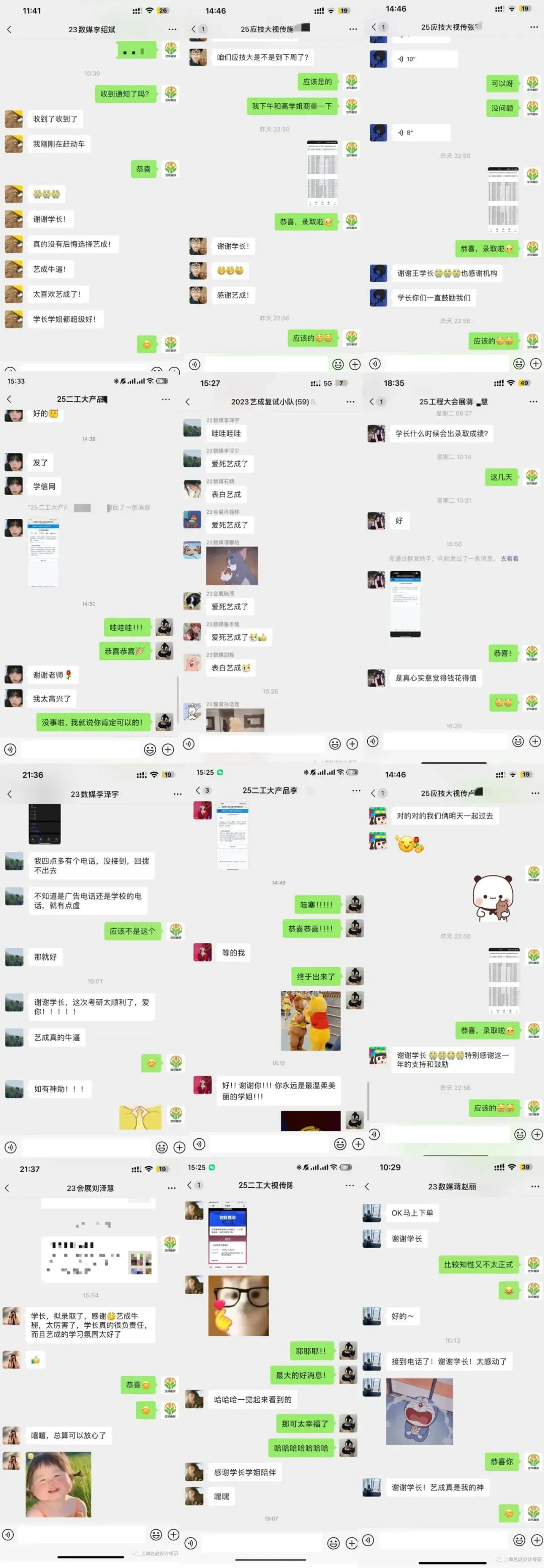 往届艺成学员们的上岸喜报,满屏的报喜瞬间,每每看到都激动不已!26届的学子们也快来沾沾喜气吧!真心永远不会被辜负,艺成的认真付出也一定会换来大家的认可!