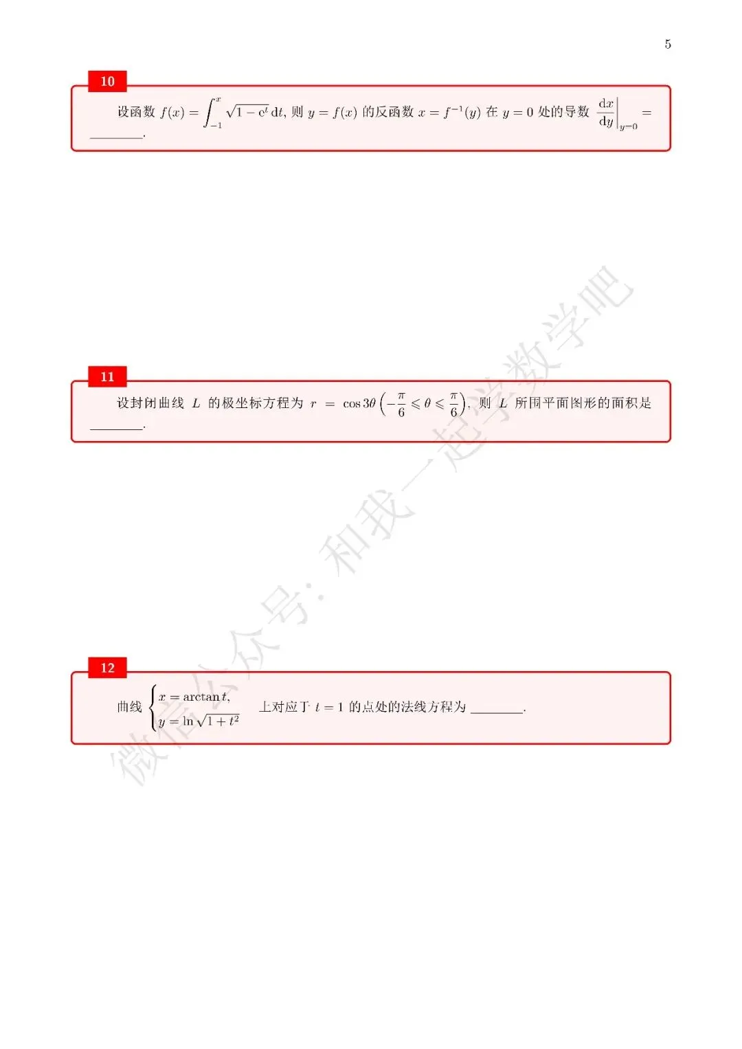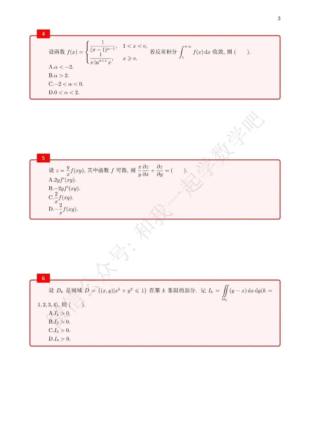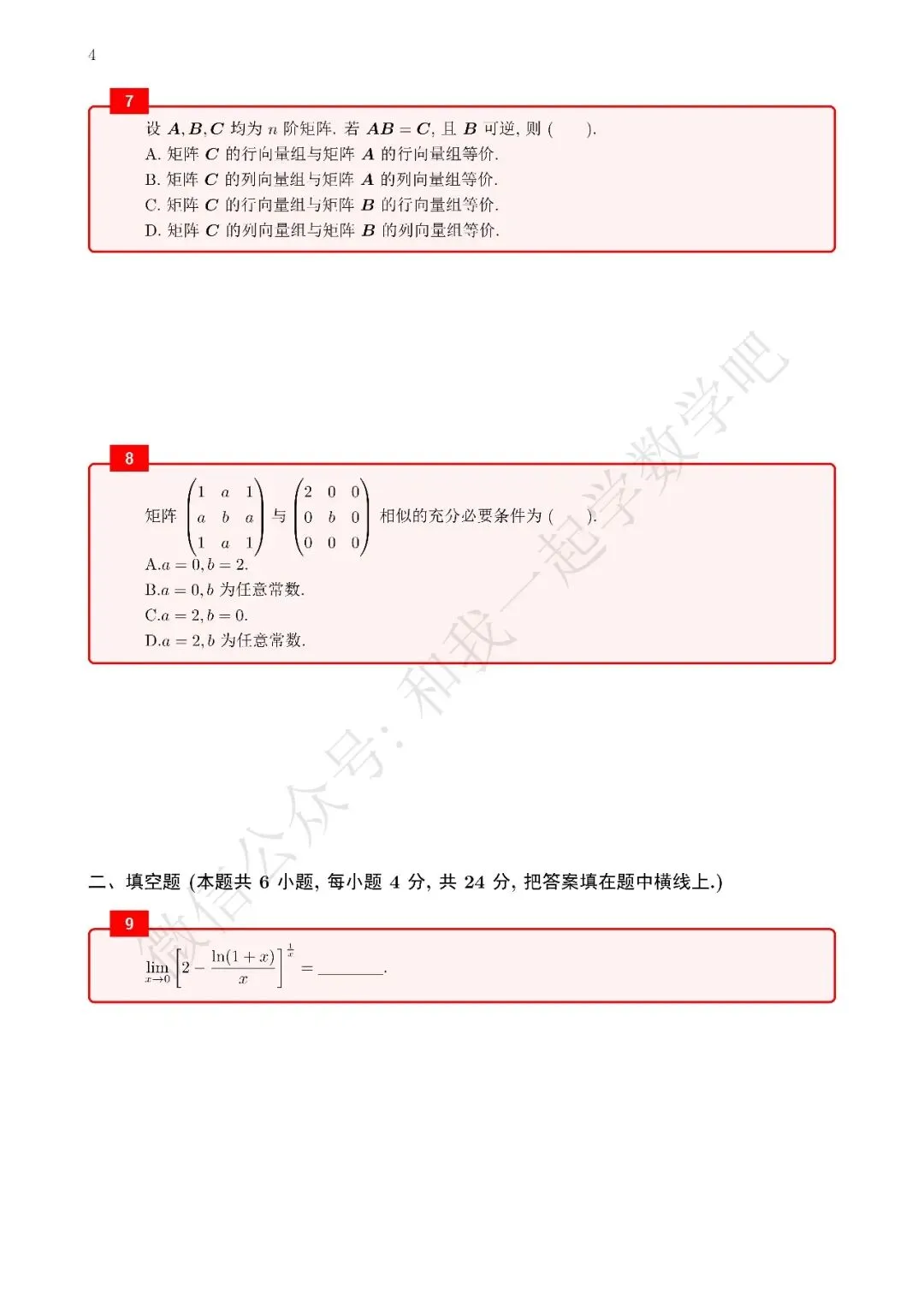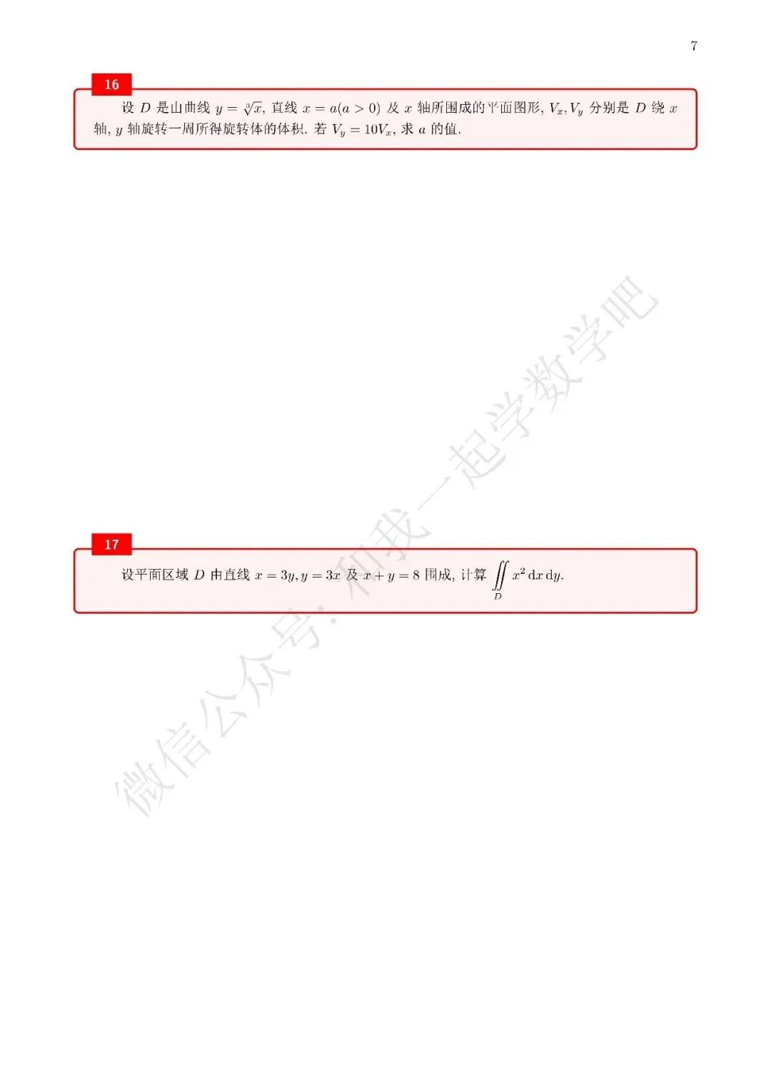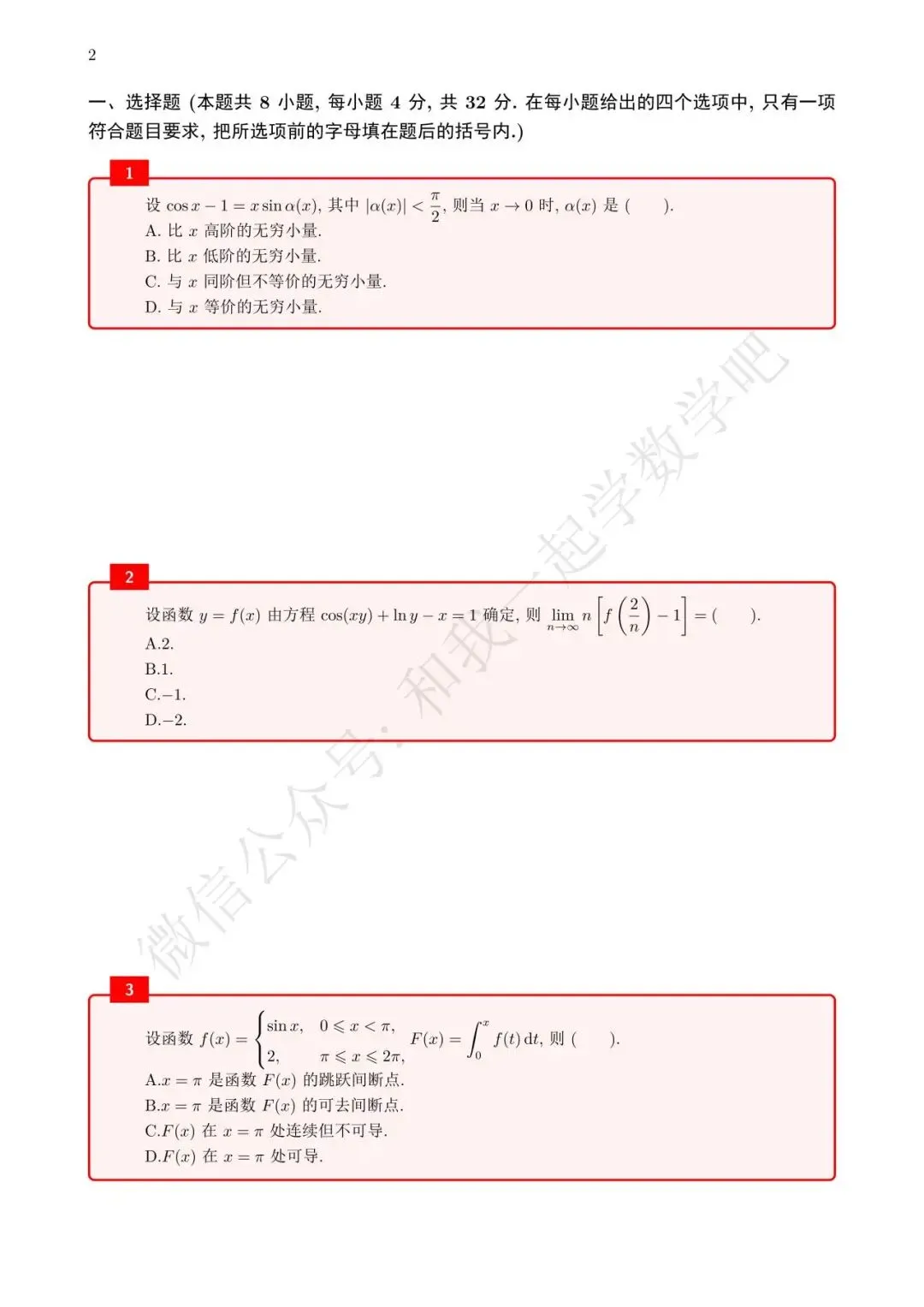 为了方便各位小伙伴们刷题,我重新排版了13年数二的真题,在每道题下面都增加了空白,方便大家写答案,记录相关知识点。