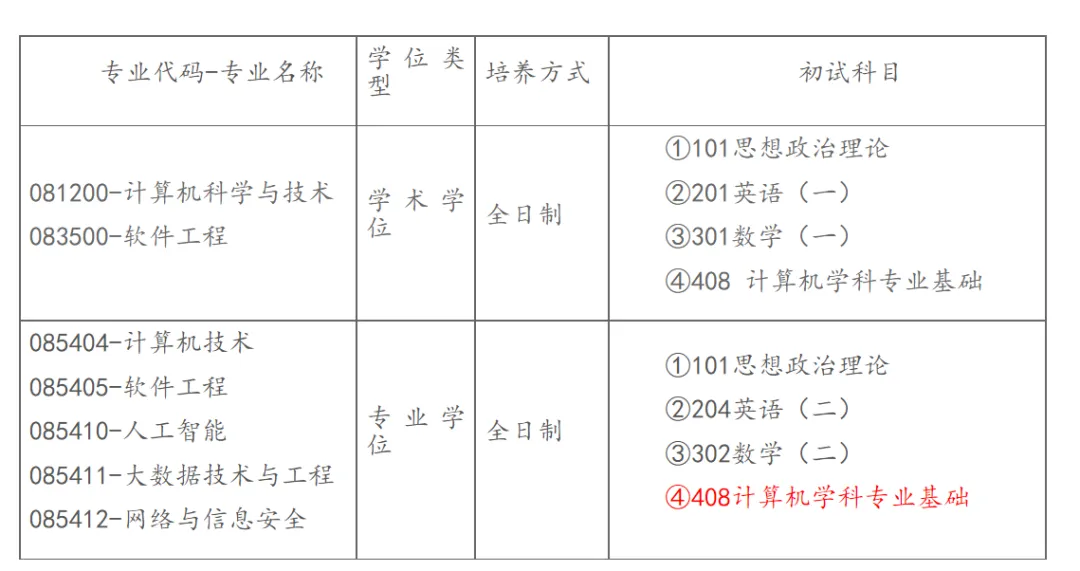 关于调整2024年全国硕士研究生招生考试初试科目的公告初试科目④调整为教育部统考科目“408计算机学科专业基础”,原自命题科目“834计算机专业基础(数据结构、操作系统)”和“835软件工程专业基础(数据结构、高级语言程序设计)”不再使用。