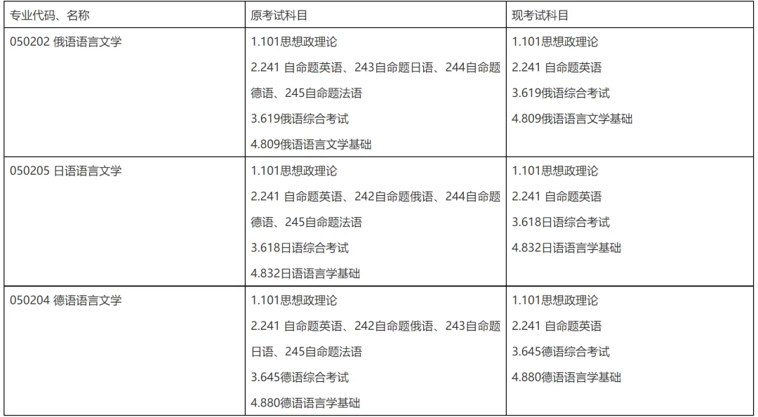 西南大学外国语学院050202俄语语言文学、050205 日语语言文学、050204 德语语言文学,初试科目二外国语,改为固定考试科目241自命题英语,不再由考生自主选择。