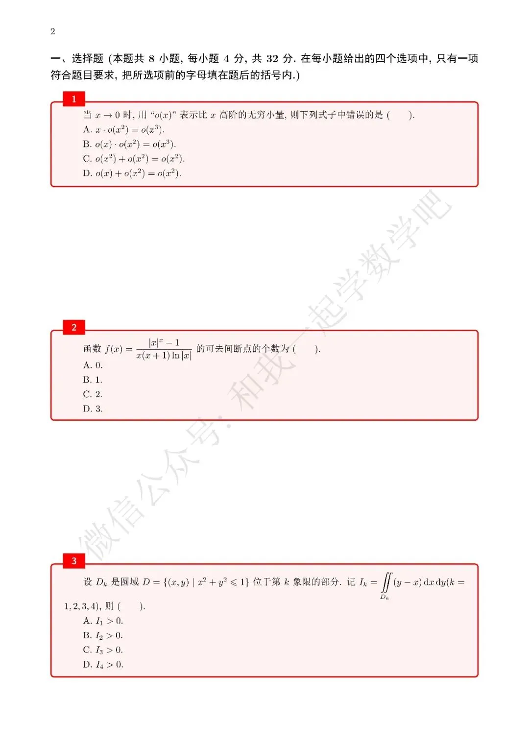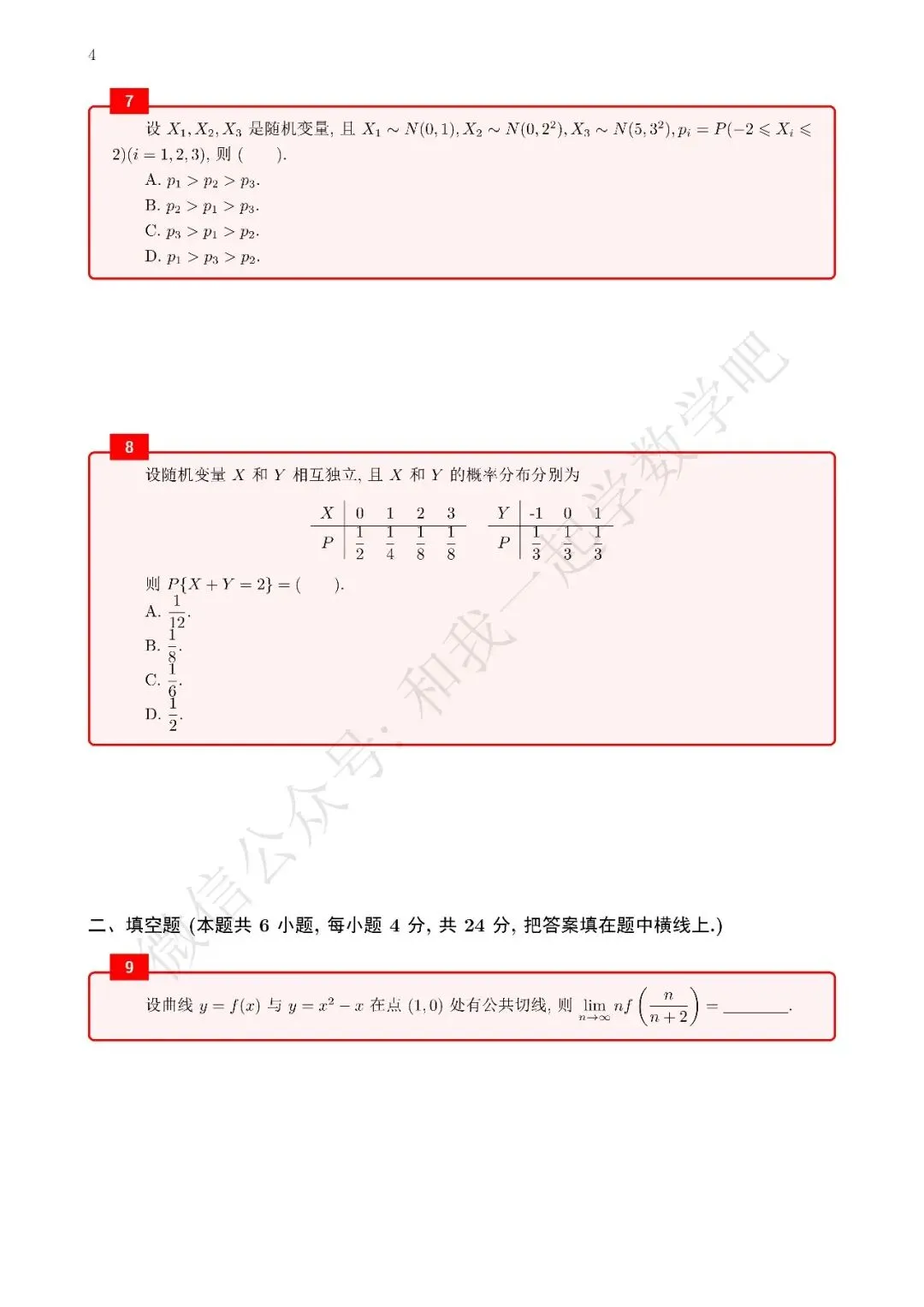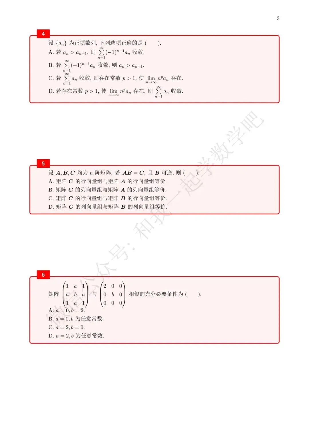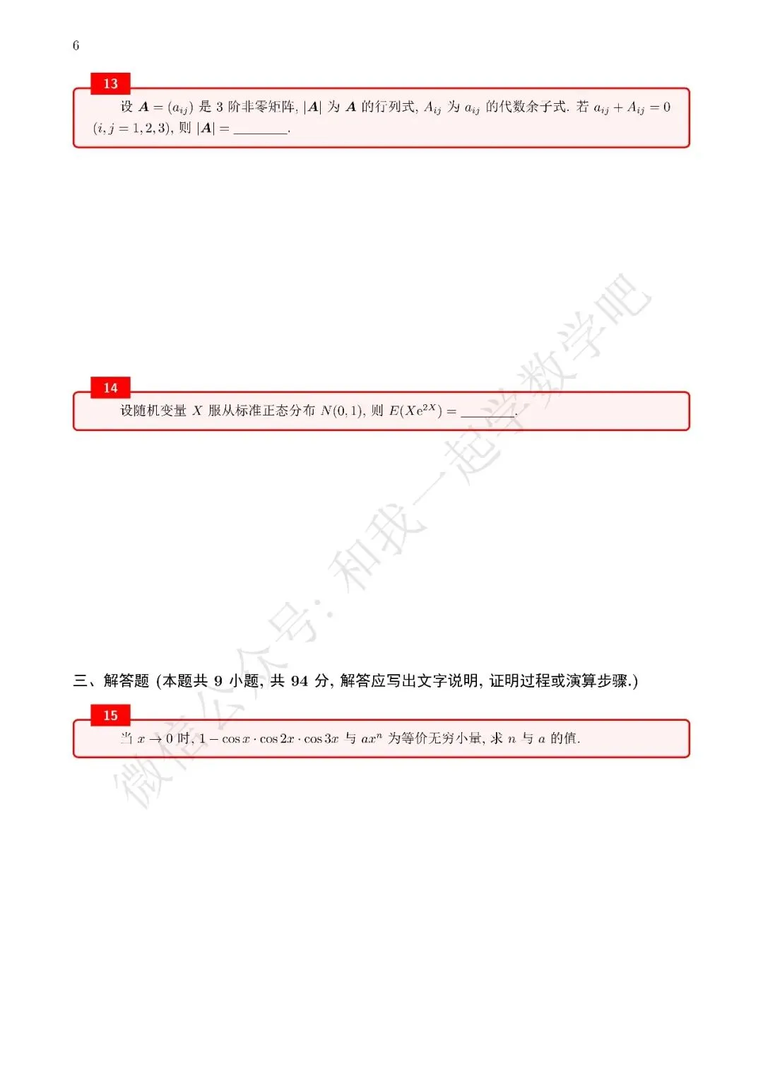 为了方便各位小伙伴们刷题,我重新排版了13年数三的真题,在每道题下面都增加了空白,方便大家写答案,记录相关知识点。