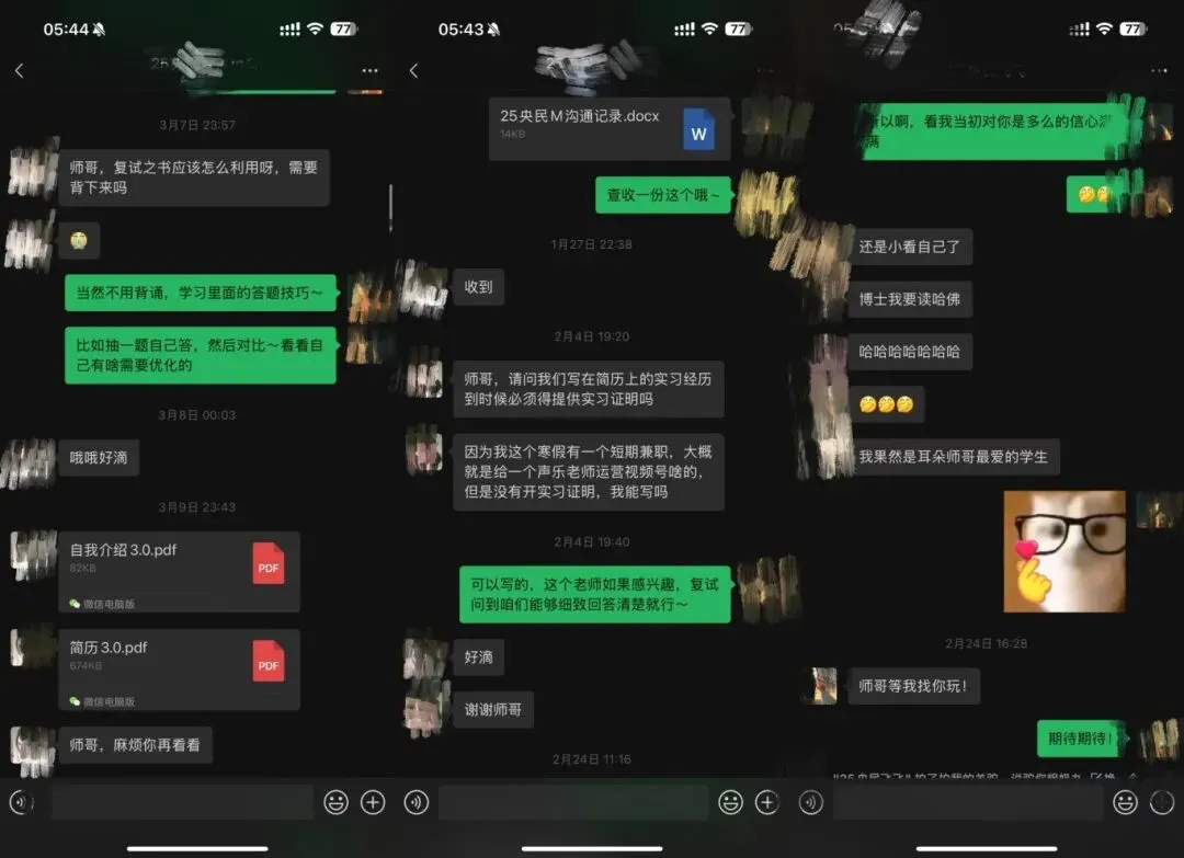 首先,直系师哥师姐们会跟你电话沟通,一件件核实准备,并确认你的复试简历和证明能力材料全面到位。