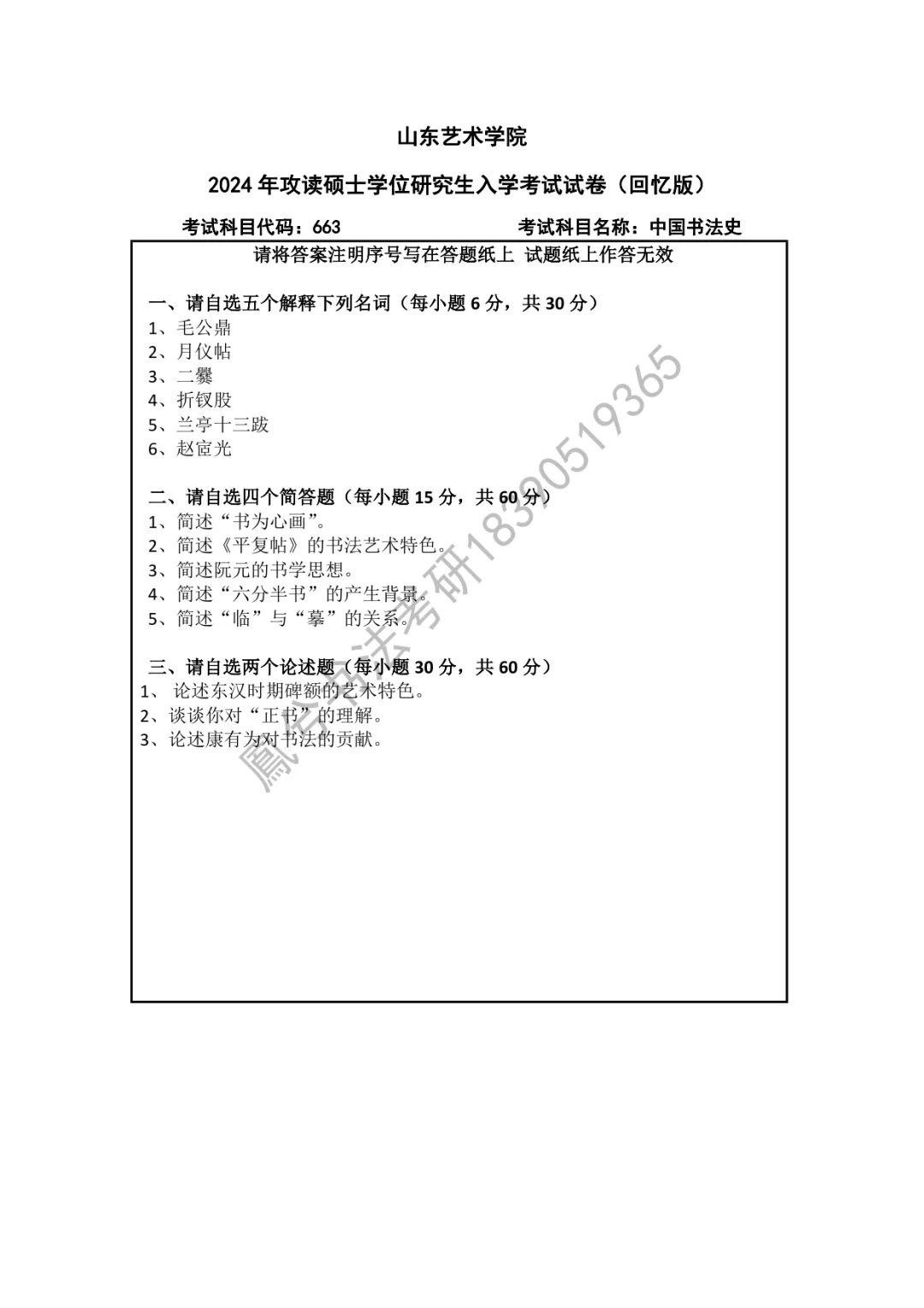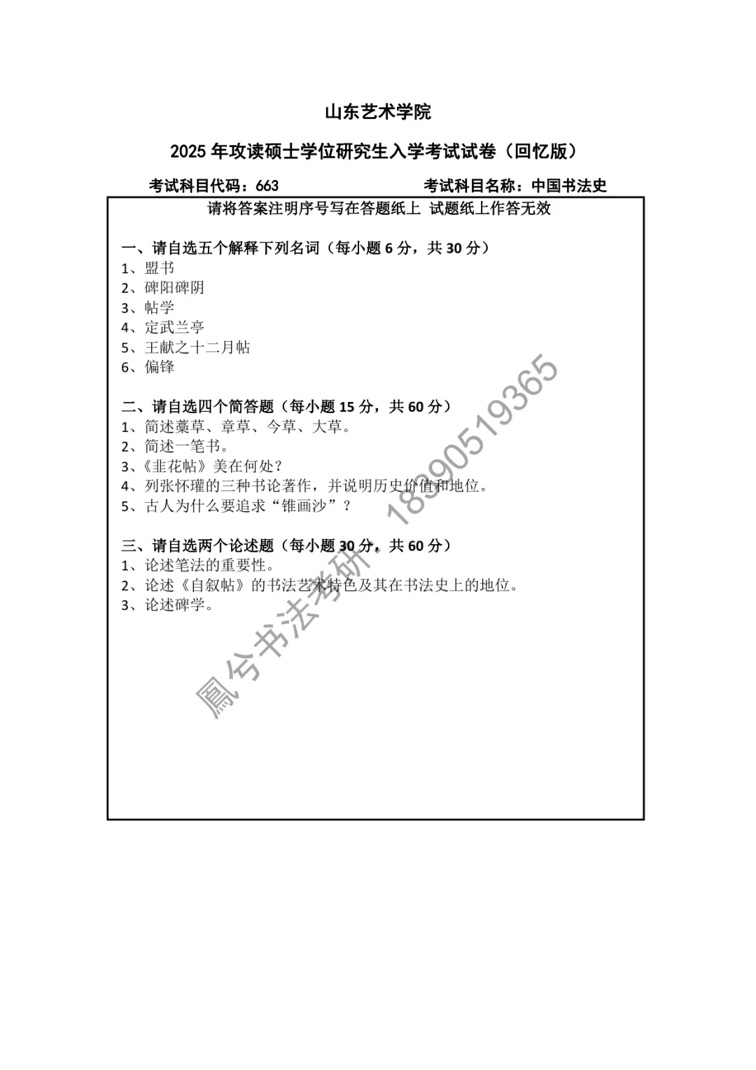27院校分析 | 山东艺术学院书法考研招考信息与真题分析