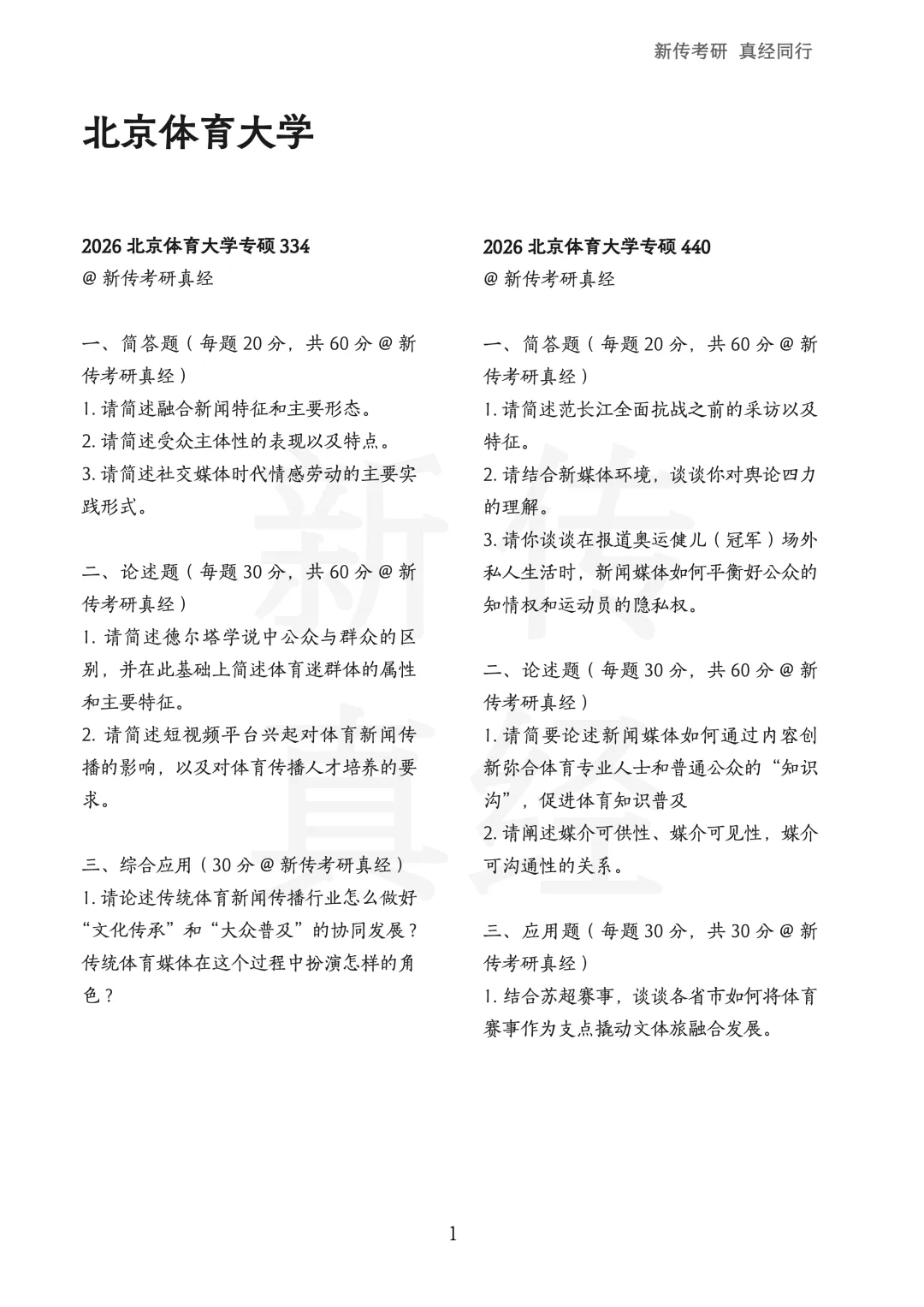 2020北京体育大学专硕334