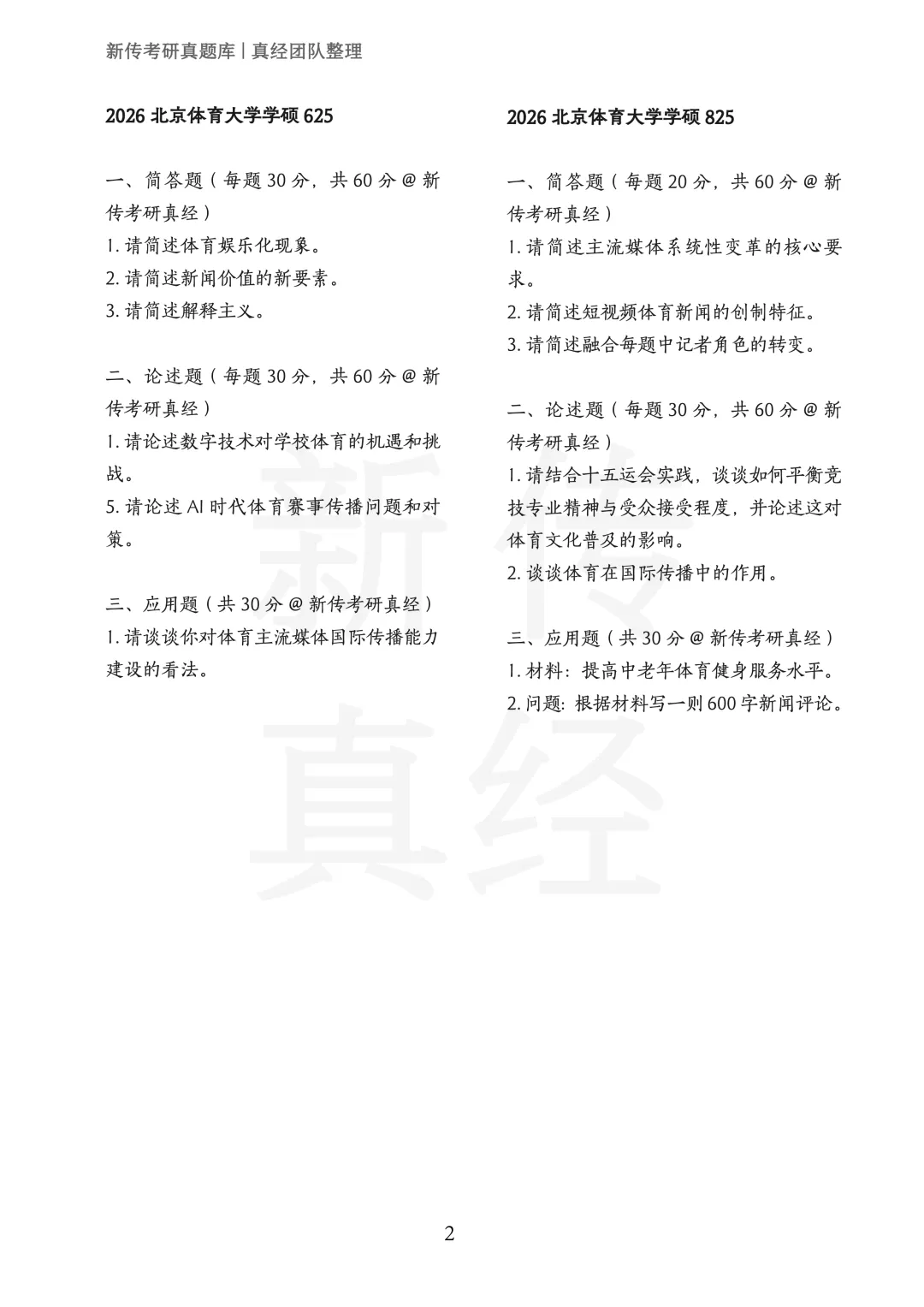 2026北京体育大学学硕825