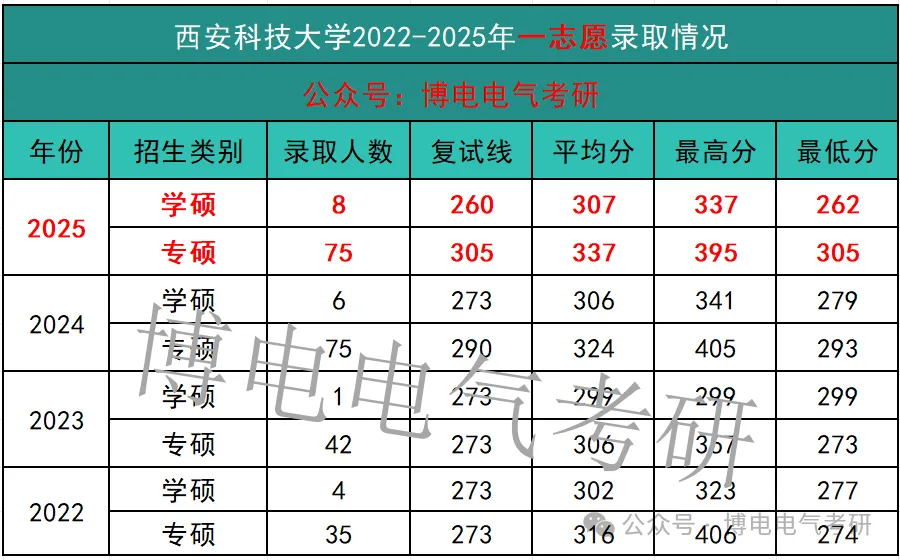 25考研西安科技大学电气专硕进入复试109人,拟录取75人,复录比为1.45:1;录取考生中,最高分为395分。最低分为305分,平均分为337分。