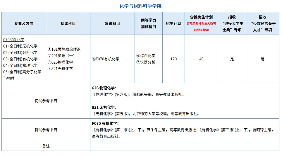 专业代码及名称:【070300】(学术学位) 化学