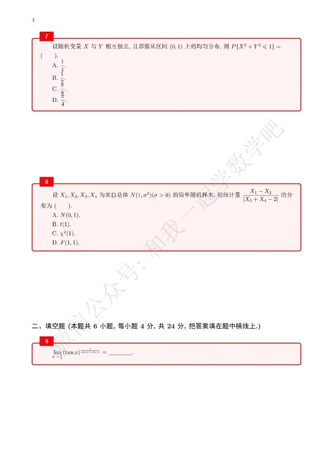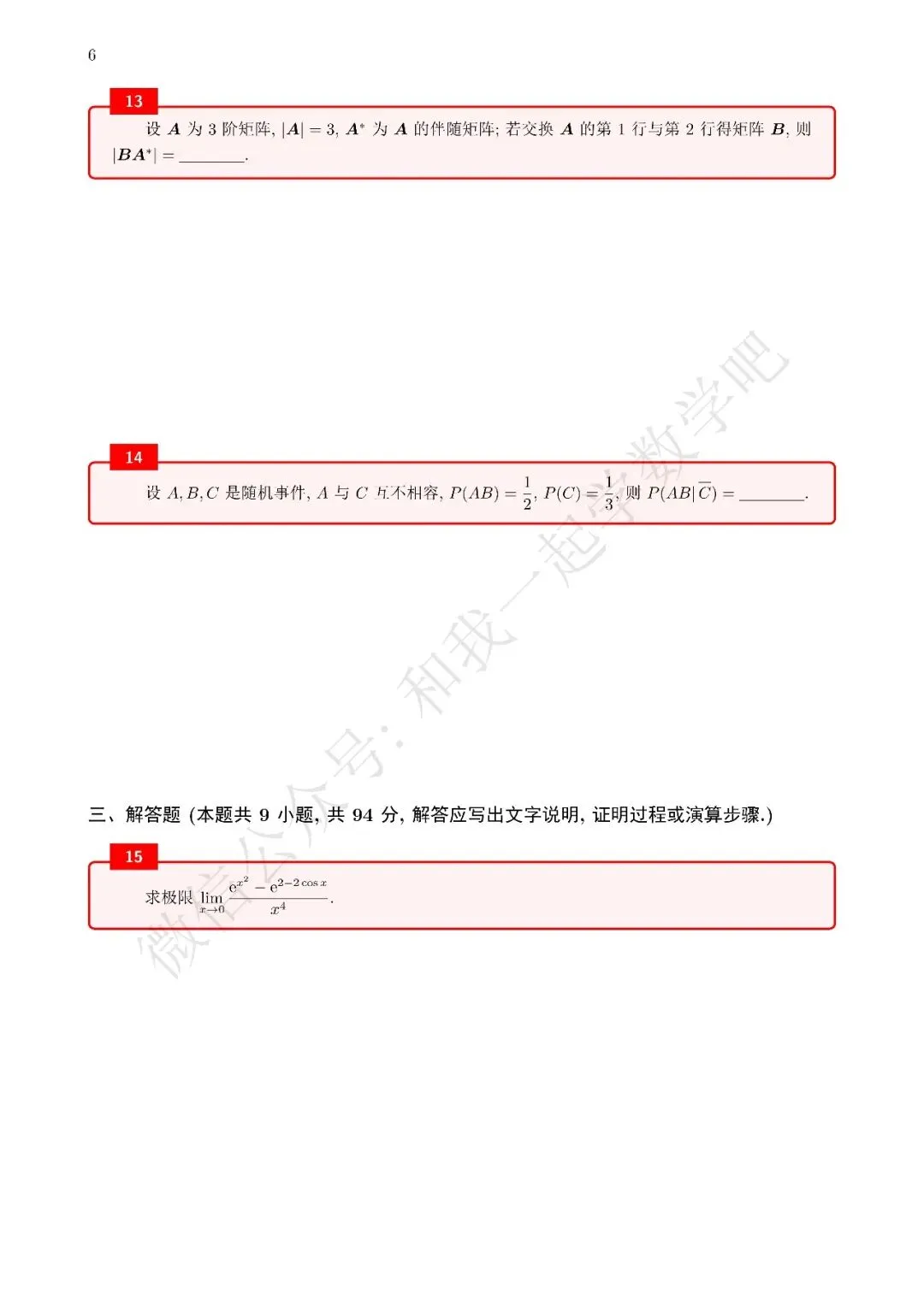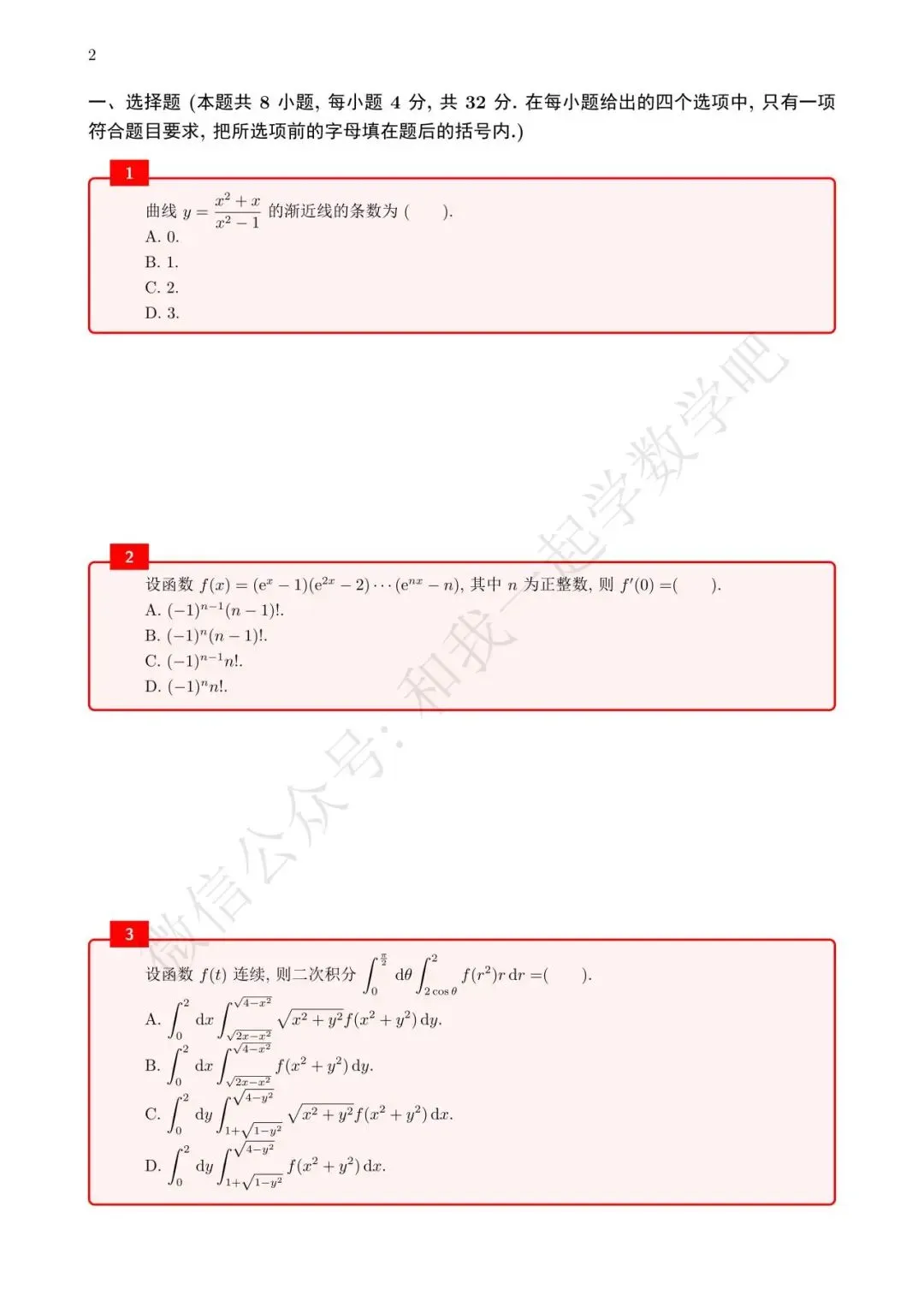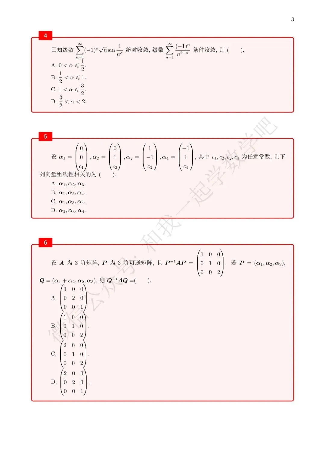 为了方便各位小伙伴们刷题,我重新排版了12年数三的真题,在每道题下面都增加了空白,方便大家写答案,记录相关知识点。