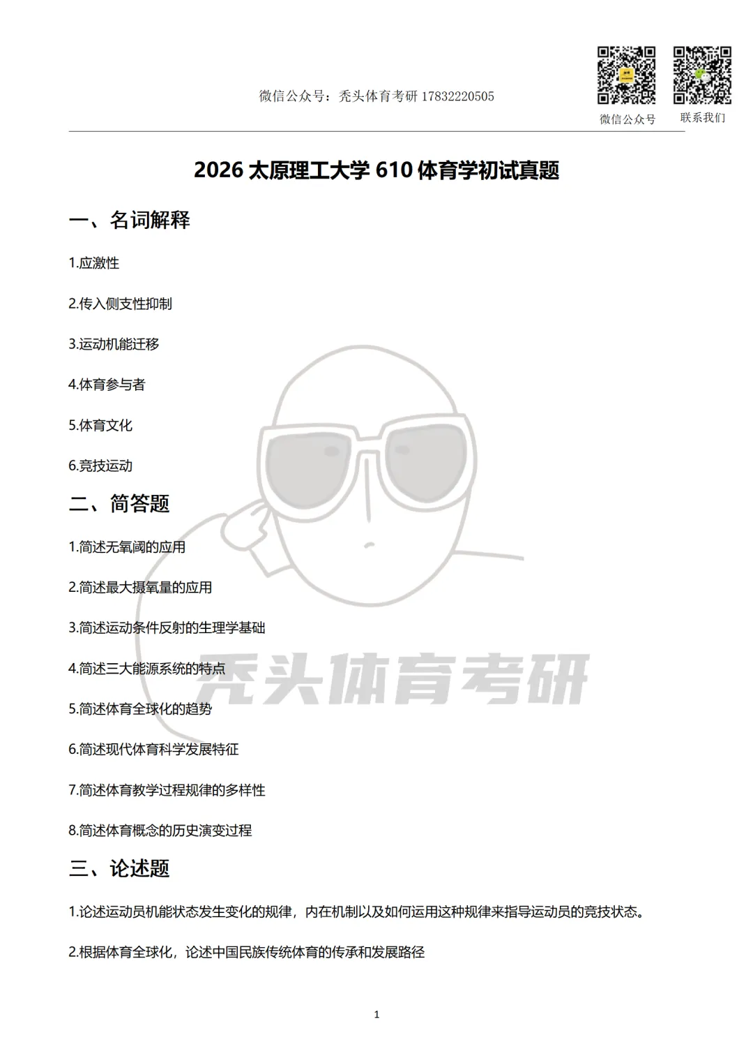>26体育考研真题丨太原理工大学610初试真题(2026)