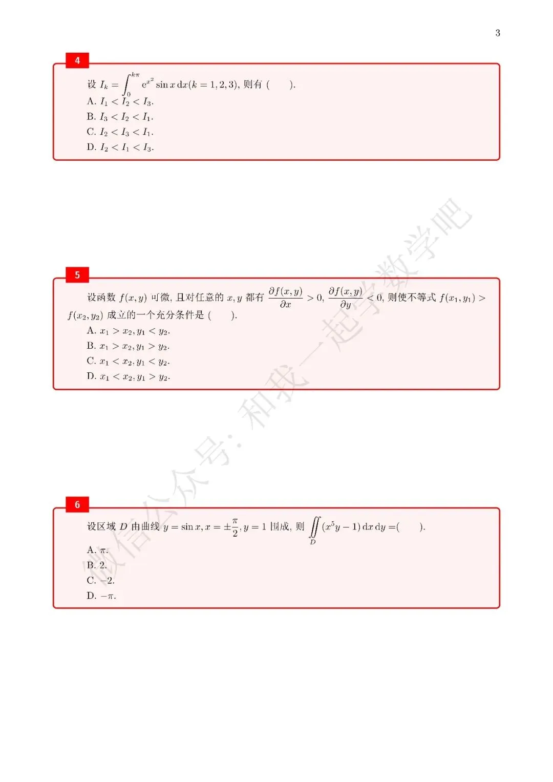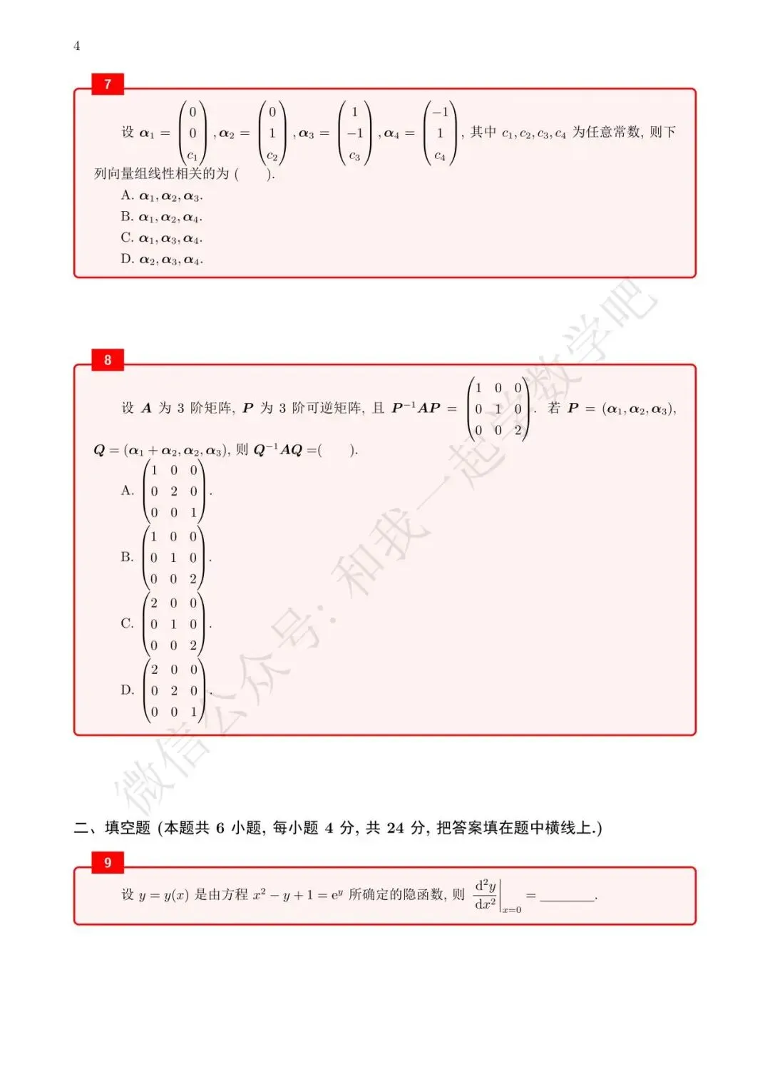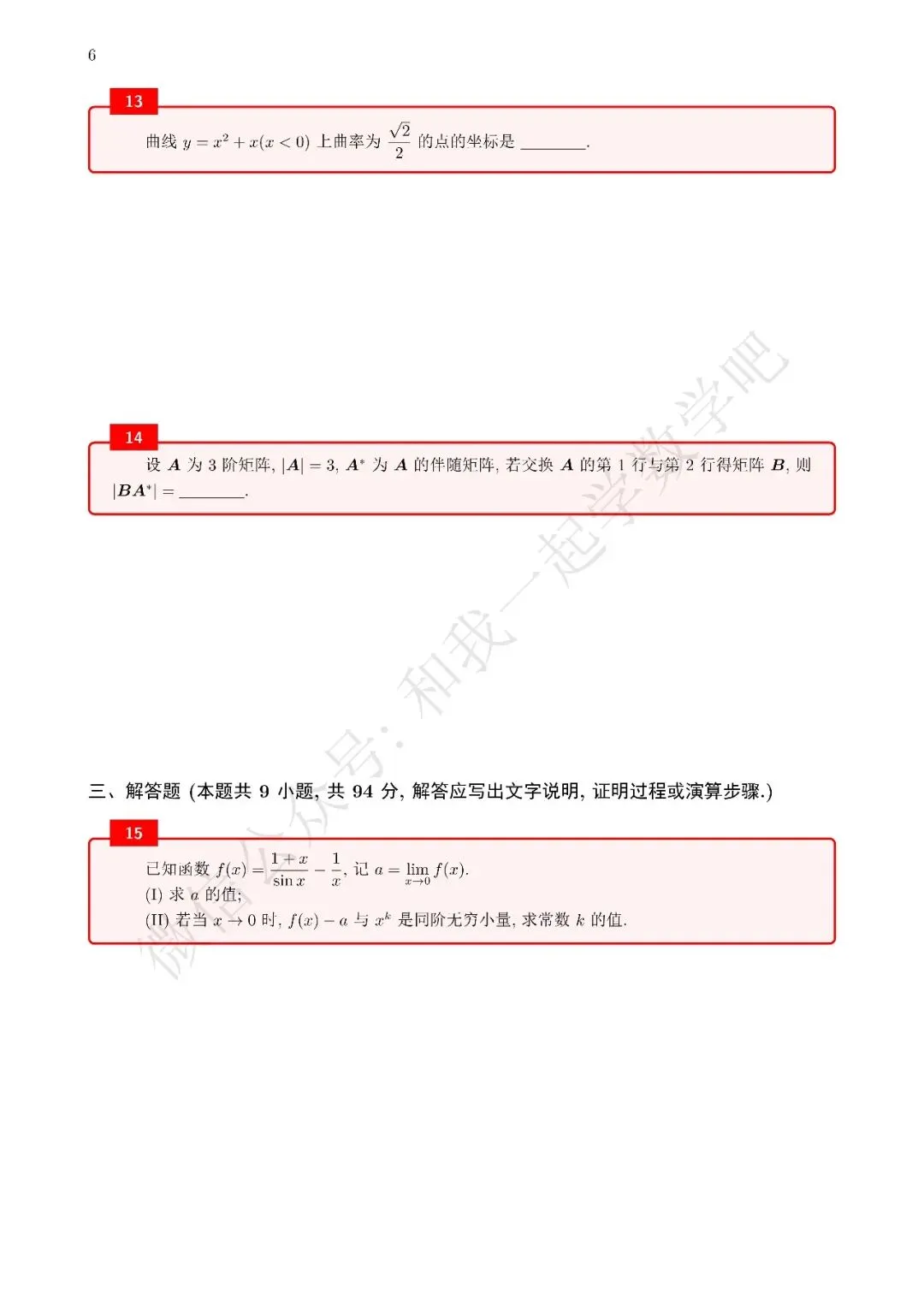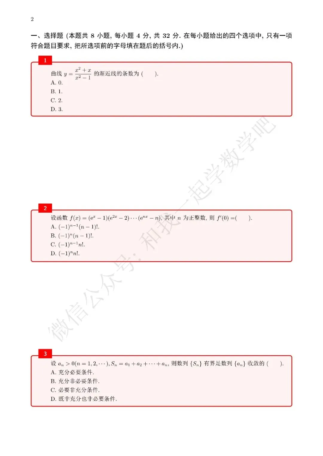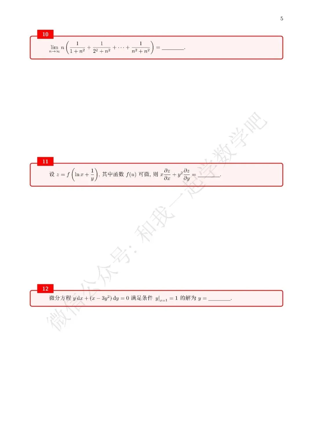 为了方便各位小伙伴们刷题,我重新排版了12年数二的真题,在每道题下面都增加了空白,方便大家写答案,记录相关知识点。