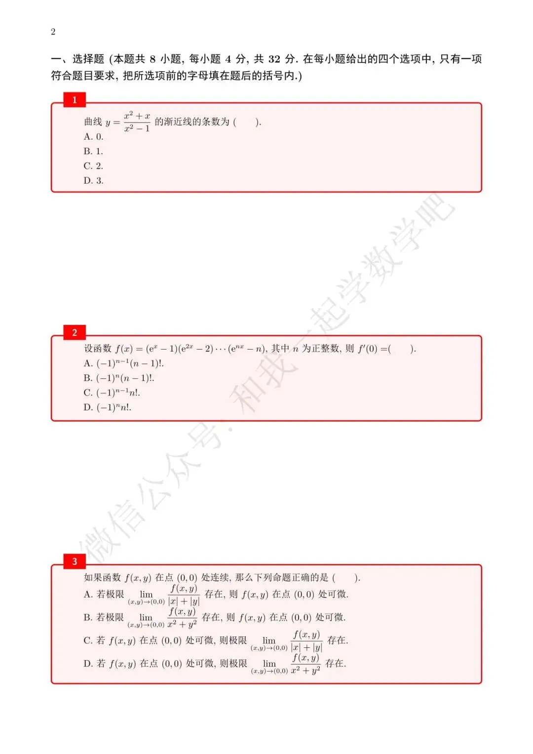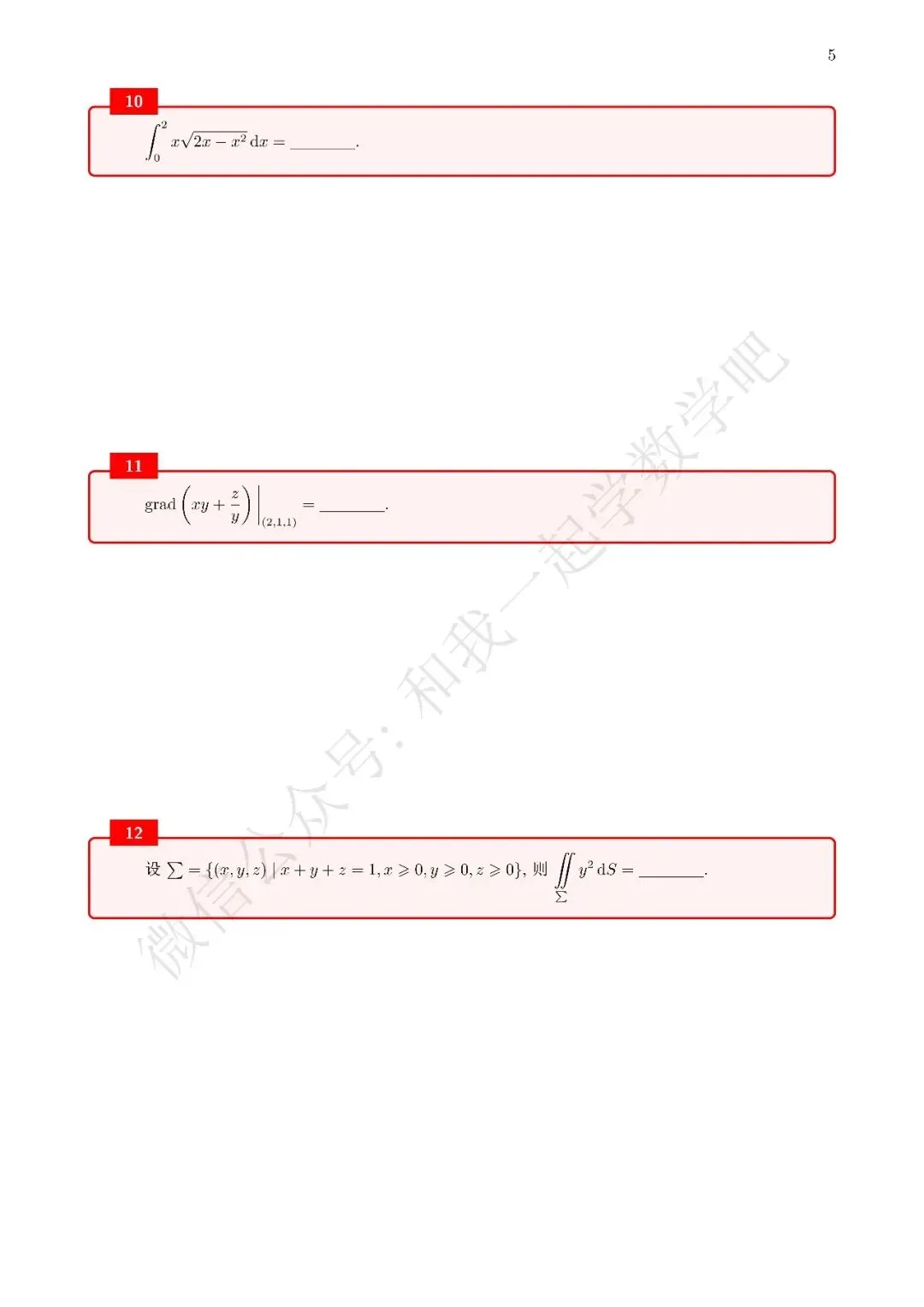 为了方便各位小伙伴们刷题,我重新排版了12年数一的真题,在每道题下面都增加了空白,方便大家写答案,记录相关知识点。
