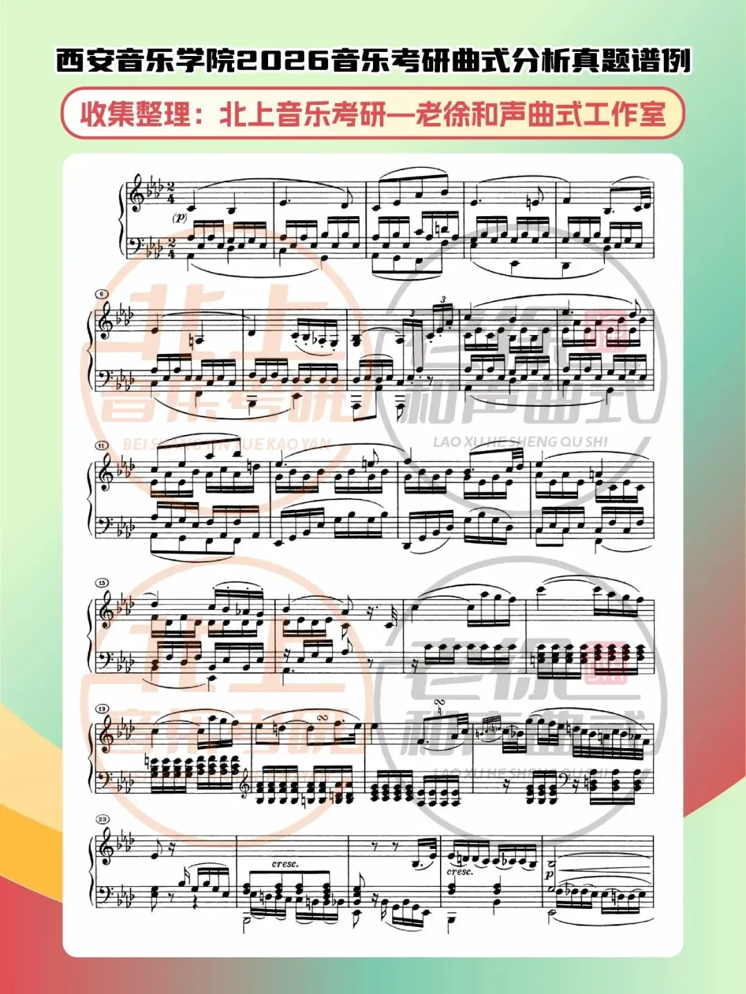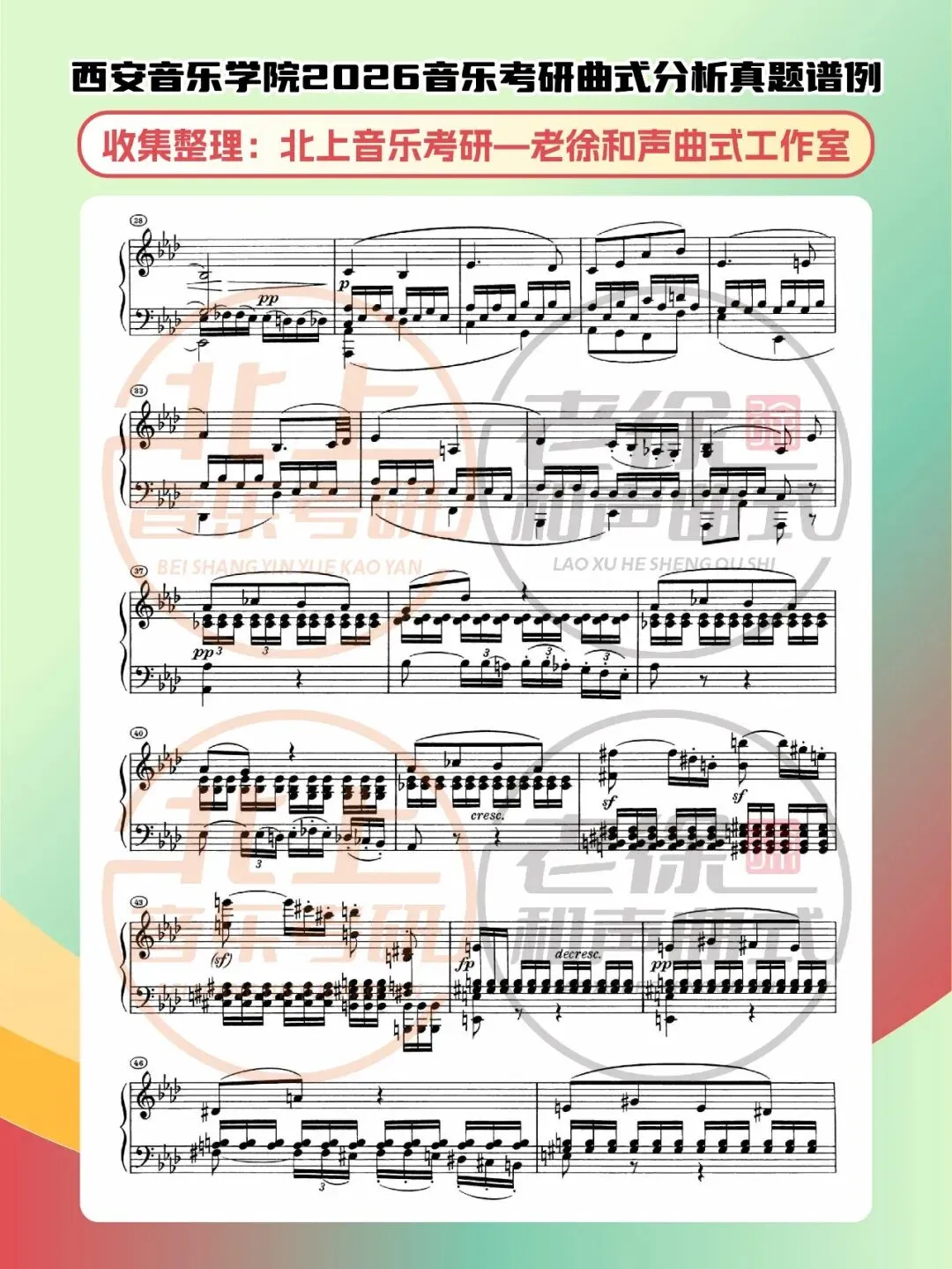 >西安音乐学院2026音乐考研曲式分析真题谱例|北上音乐考研—老徐和声曲式工作室收集整理