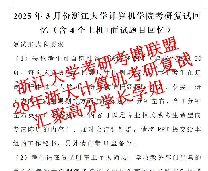 1.浙江大学计算机学院2025面试题目及经验体会(含上机和面试回忆)