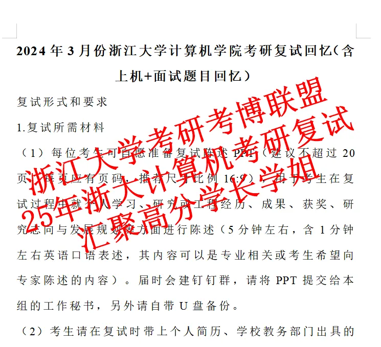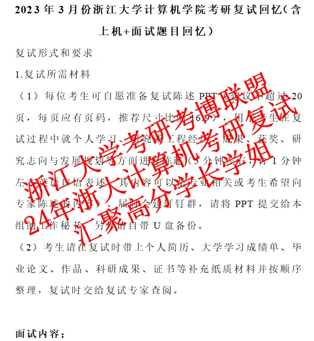 1.浙江大学计算机学院2024面试题目及经验体会(含上机和面试回忆)