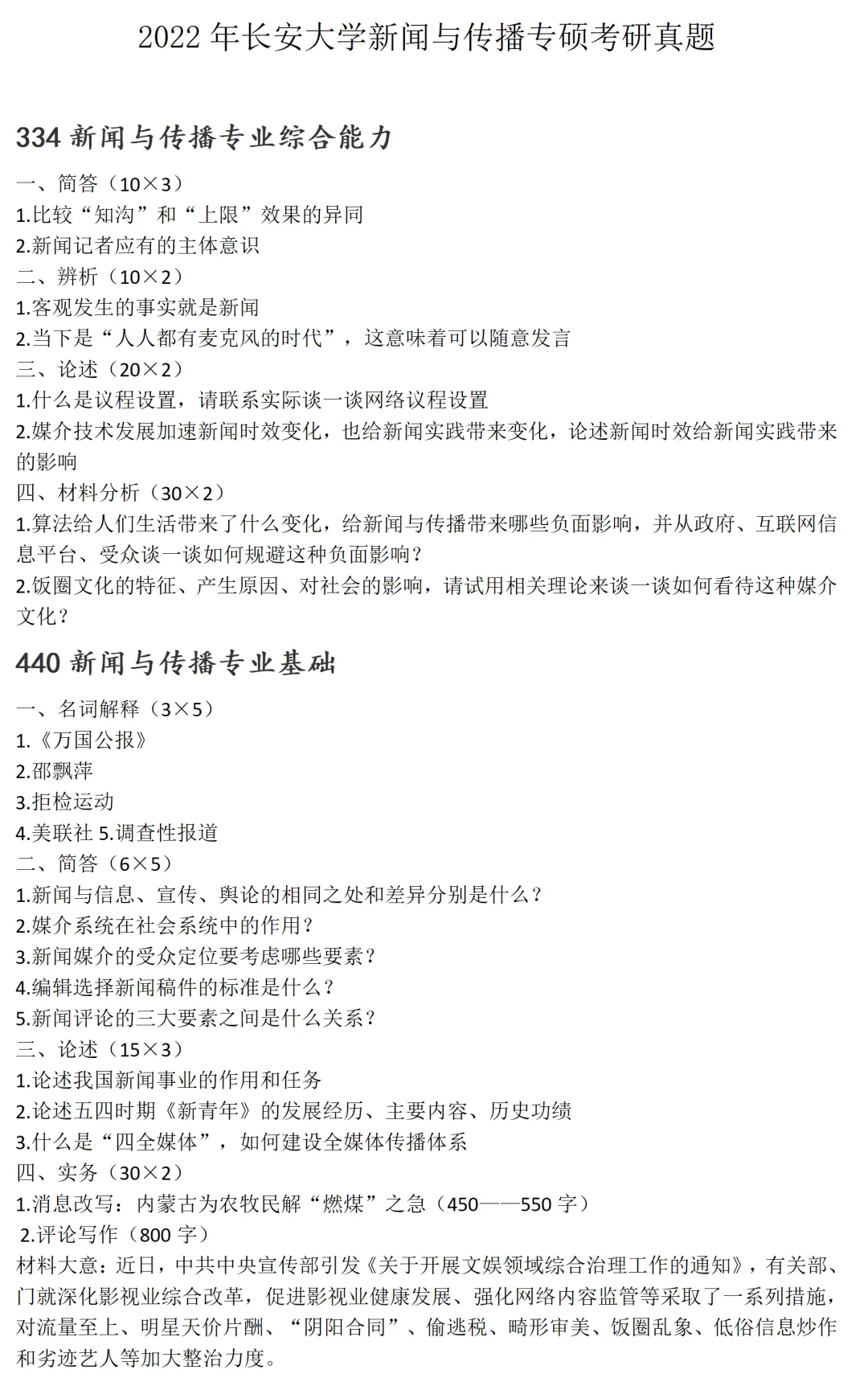 长安大学新闻与传播2018-2025历年考研真题已整理好,可直接获取!