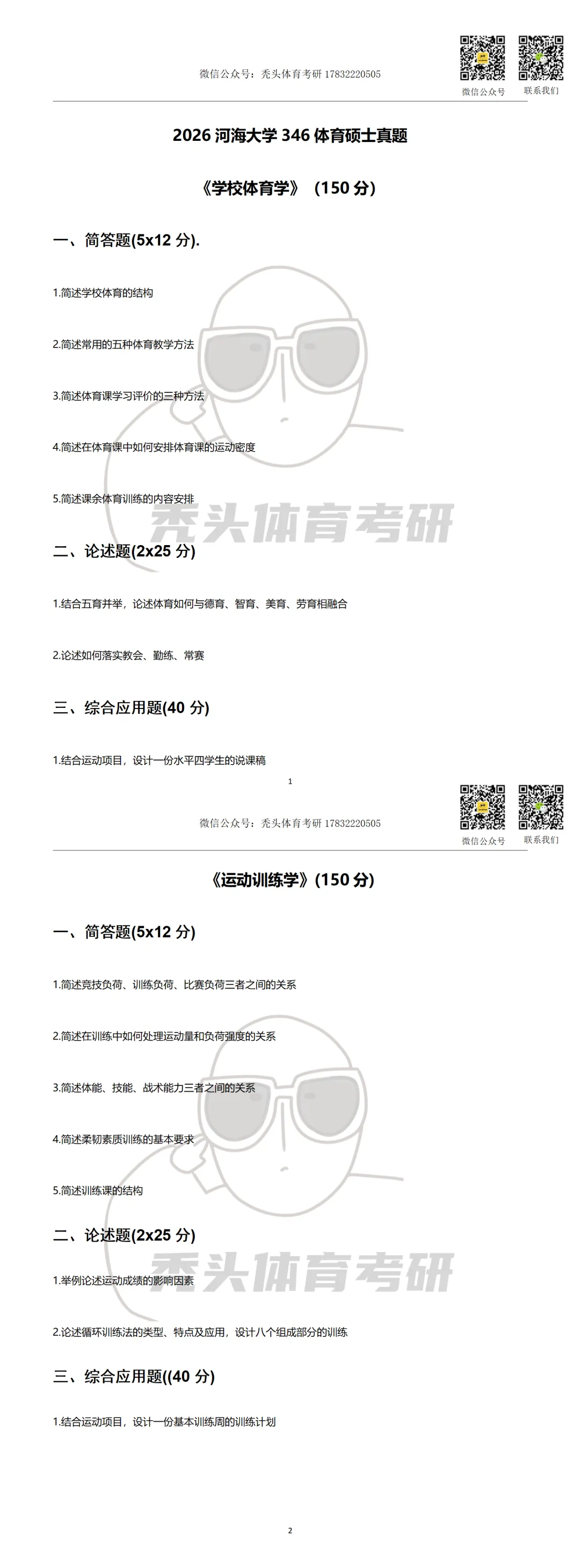 >26体育考研真题丨河海大学346初试真题(2026)