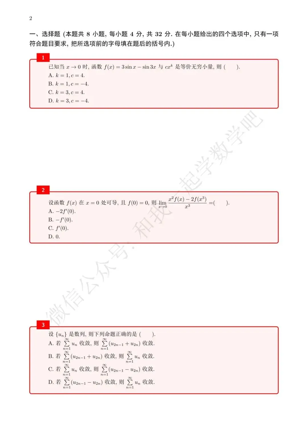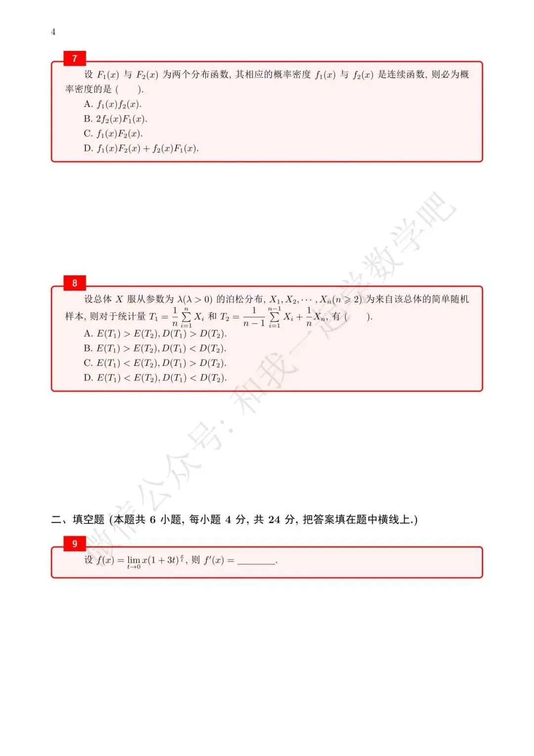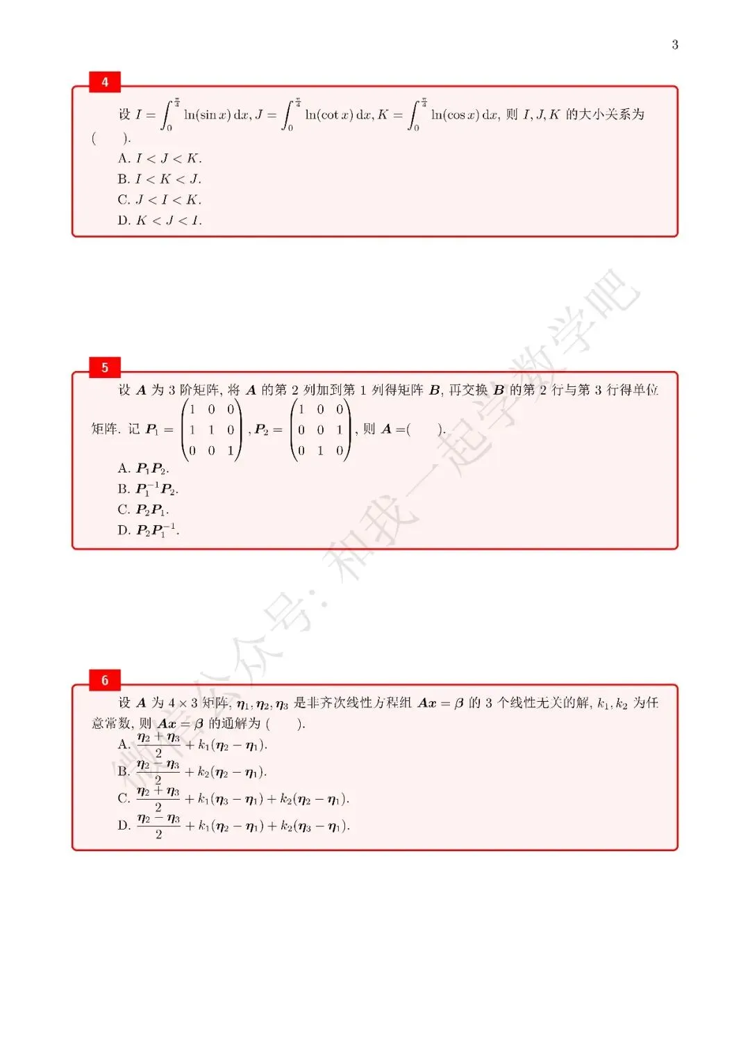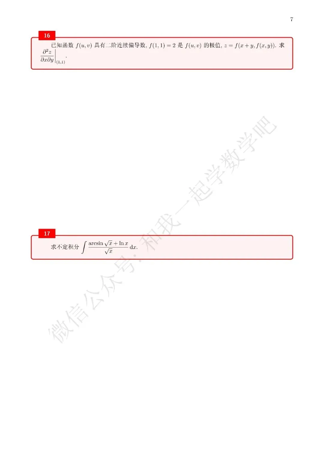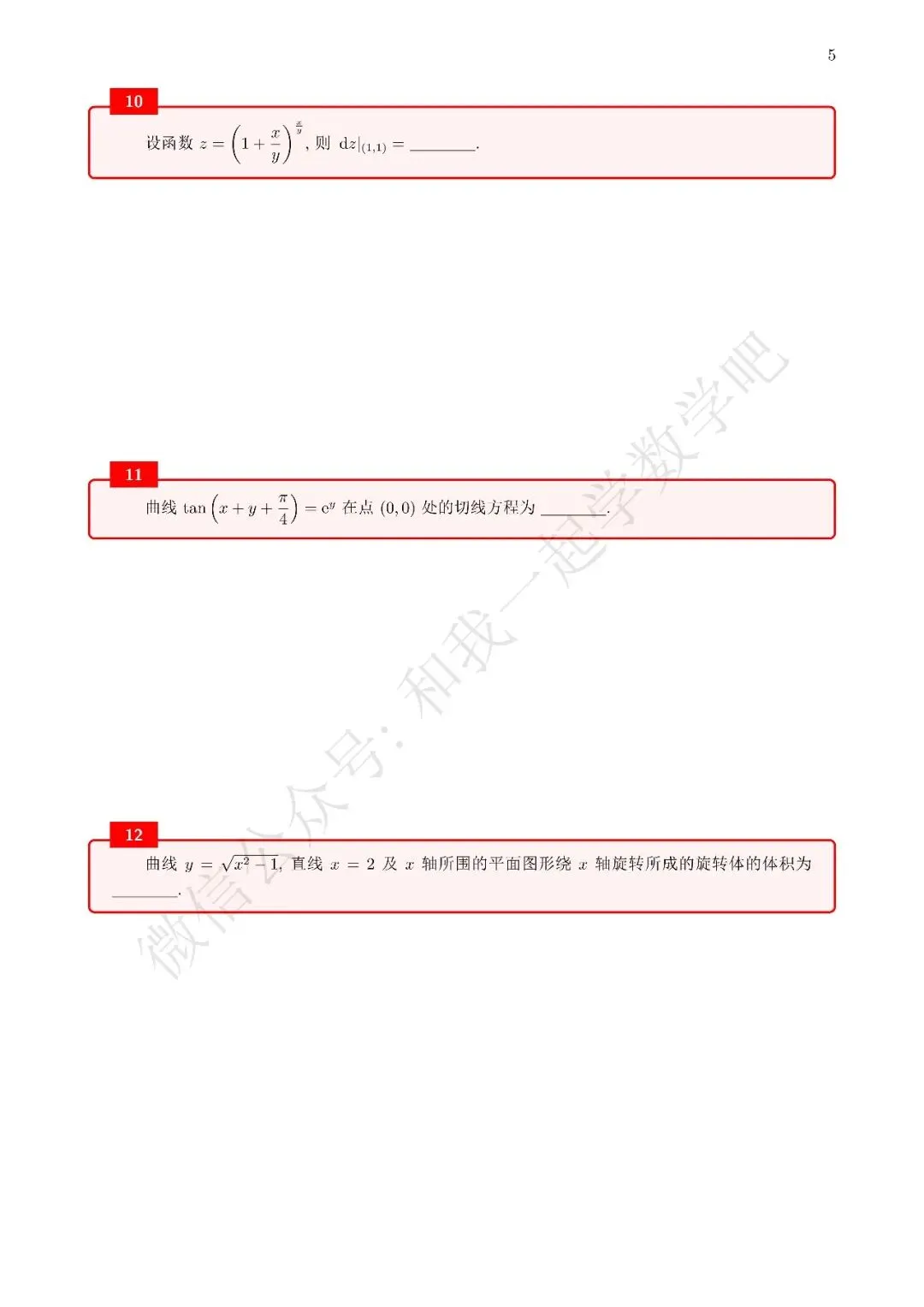 为了方便各位小伙伴们刷题,我重新排版了11年数三的真题,在每道题下面都增加了空白,方便大家写答案,记录相关知识点。