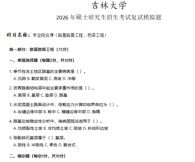 吉林大学专业综合课(路基路面工程、桥梁工程)考研复试真题模拟含答案