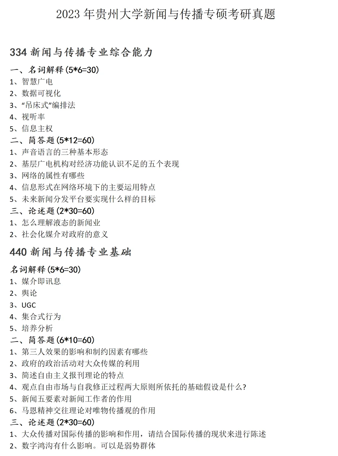 >贵州大学新闻与传播考研真题2023