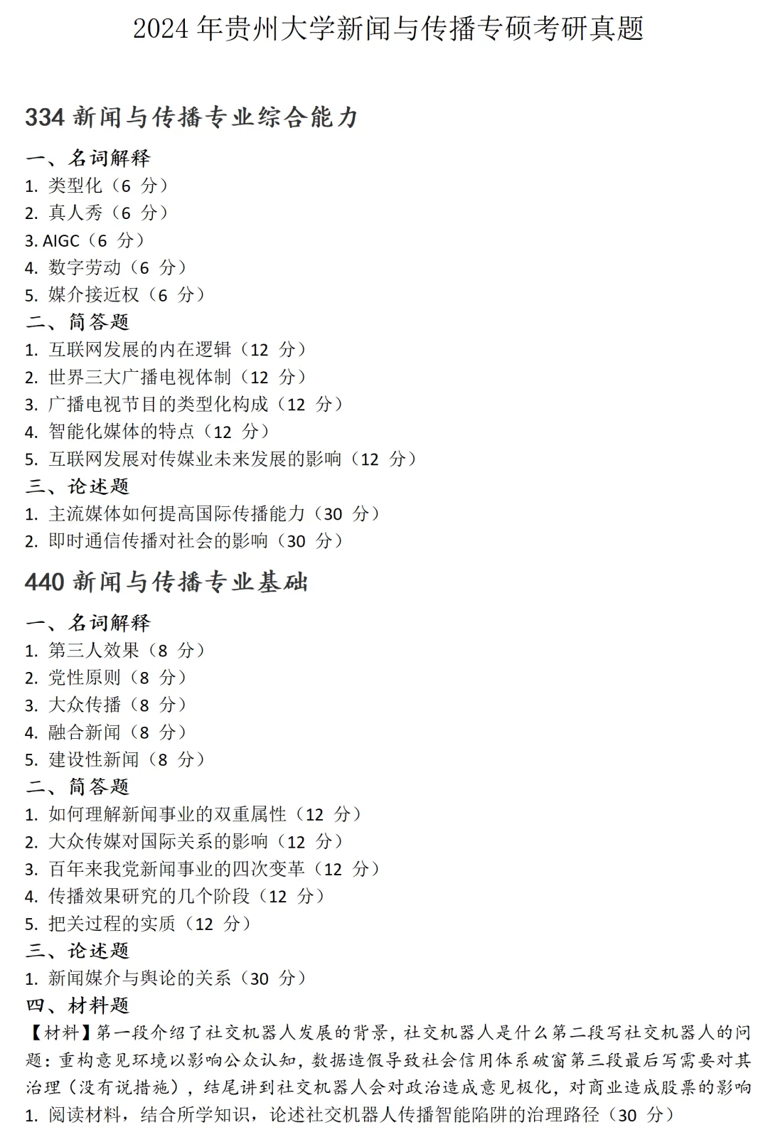 贵州大学新闻与传播考研真题2024