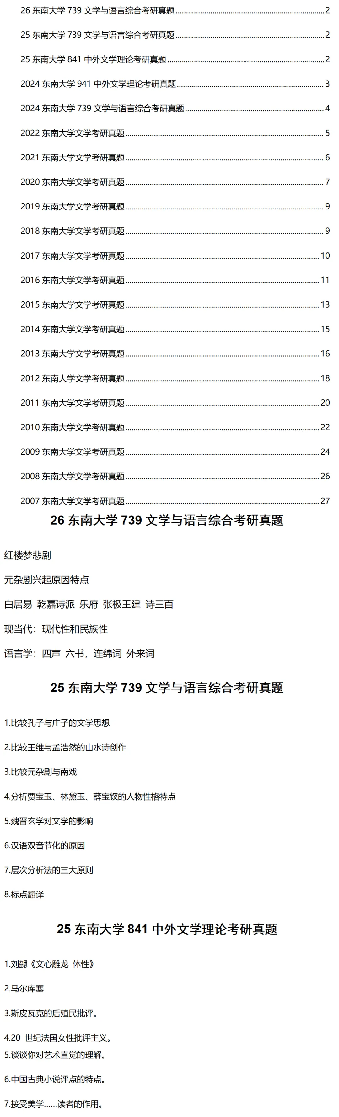 免费领取——东南大学中国语言文学考研真题2007-2026合集
