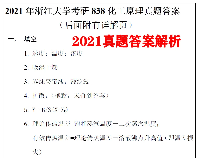 1991-2026年浙大化工原理考研真题参考答案及详解(最新独家更新,15,17除外)