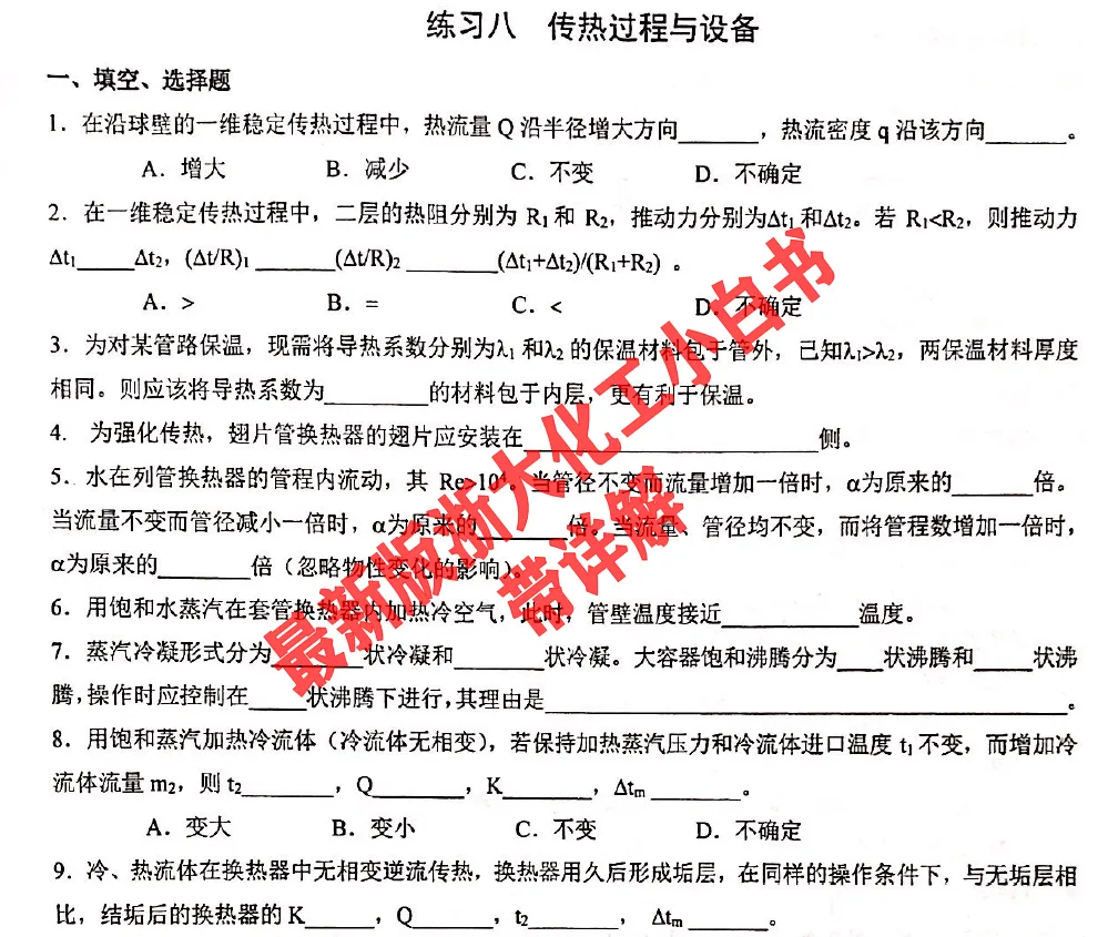 浙大化工原理近几年开始分为两种,包含括号(含流体力学、传热学、传质过程)和不含括号的,外面最多有一种题目,我们两种题目都包含!独家提供两种!