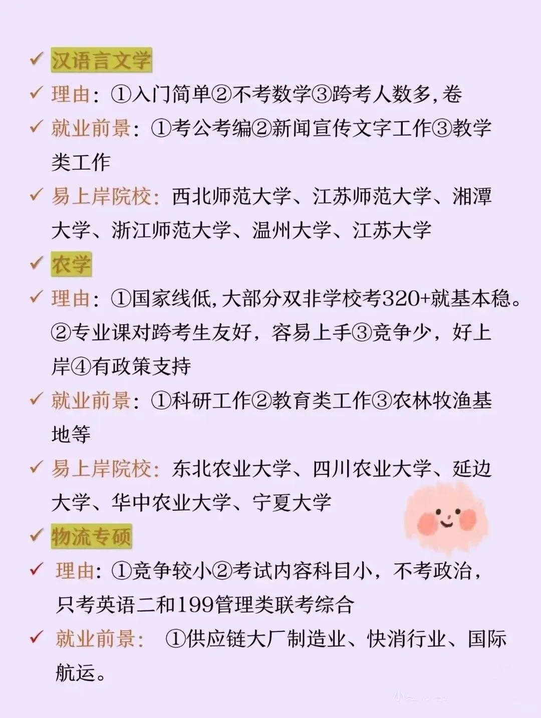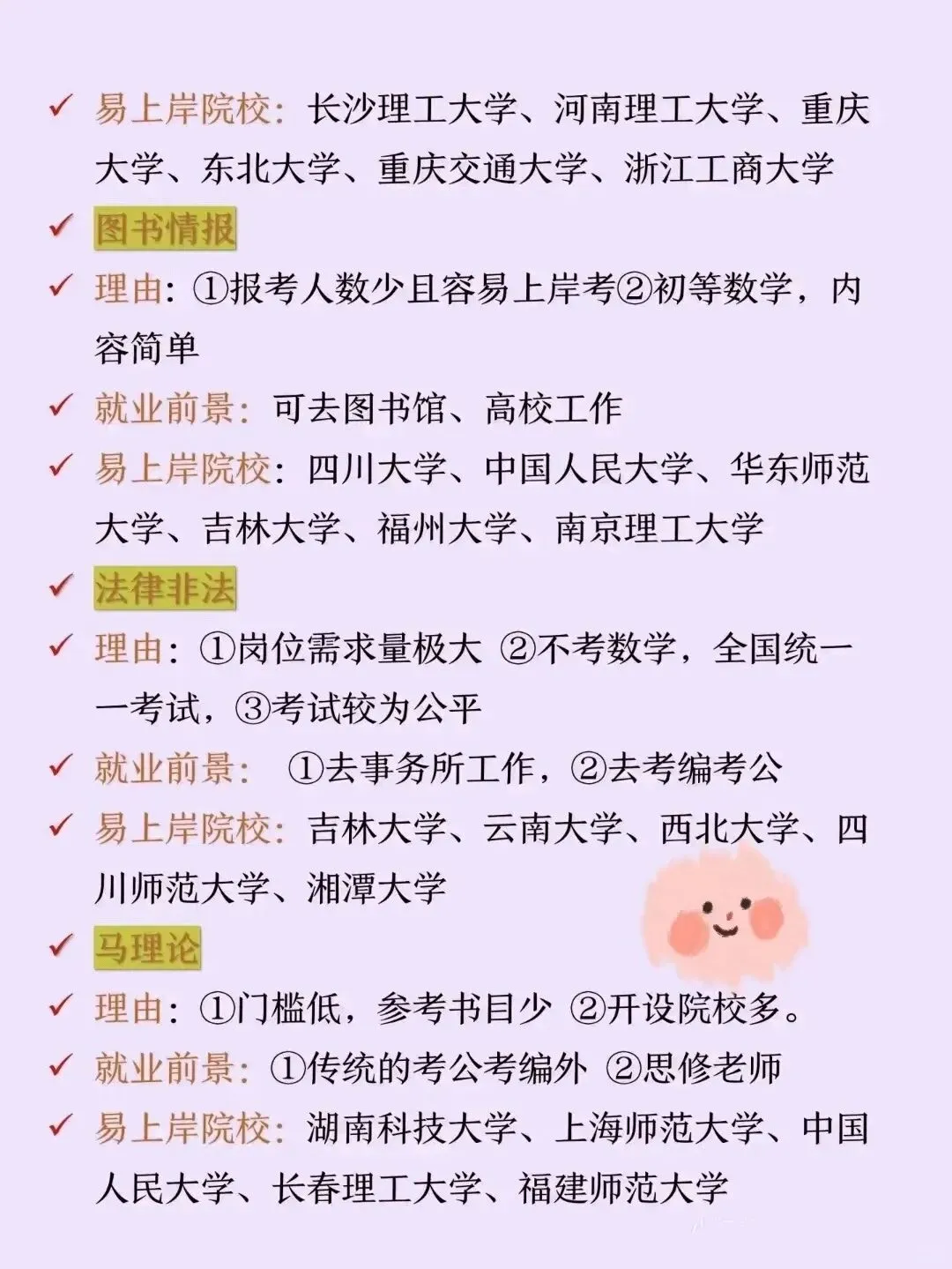 对于“26考研只求上岸的专业推荐”,这里有一些相对容易上岸的专业可以考虑,但请注意,选择专业时还需结合个人兴趣、职业规划以及专业发展趋势等因素综合考量。以下是一些推荐的专业及其理由: