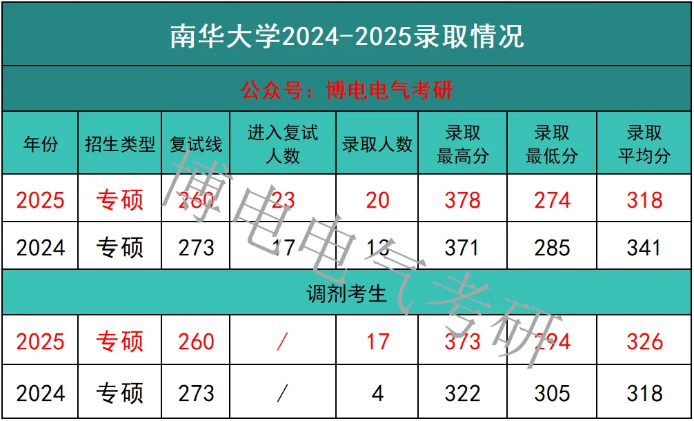 今天介绍的是24首届招生电气专硕、逐年扩招的高校——南华大学的25考研录取分析。一、湖南省电气院校初、复试科目汇总