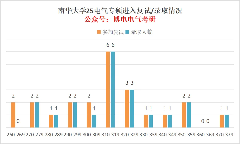 25考研南华大学电气专硕普通考生进入复试23人,拟录取20人,复录比为1.15:1;录取考生中,最高分为378分,最低分为274分,平均分为318分。