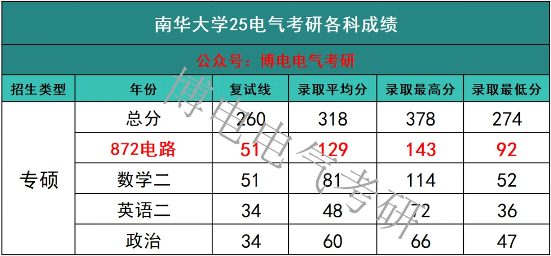 下述表格为南华大学电气考研25届各科成绩情况整理:录取考生中,专硕总分平均分为318,相较复试线260分,高58分!另外,25电气考研中,专硕的专业课平均分为129,即专业课简单易得分。下图为2026届博电教育电气工程专业研究生考试辅导课程介绍!