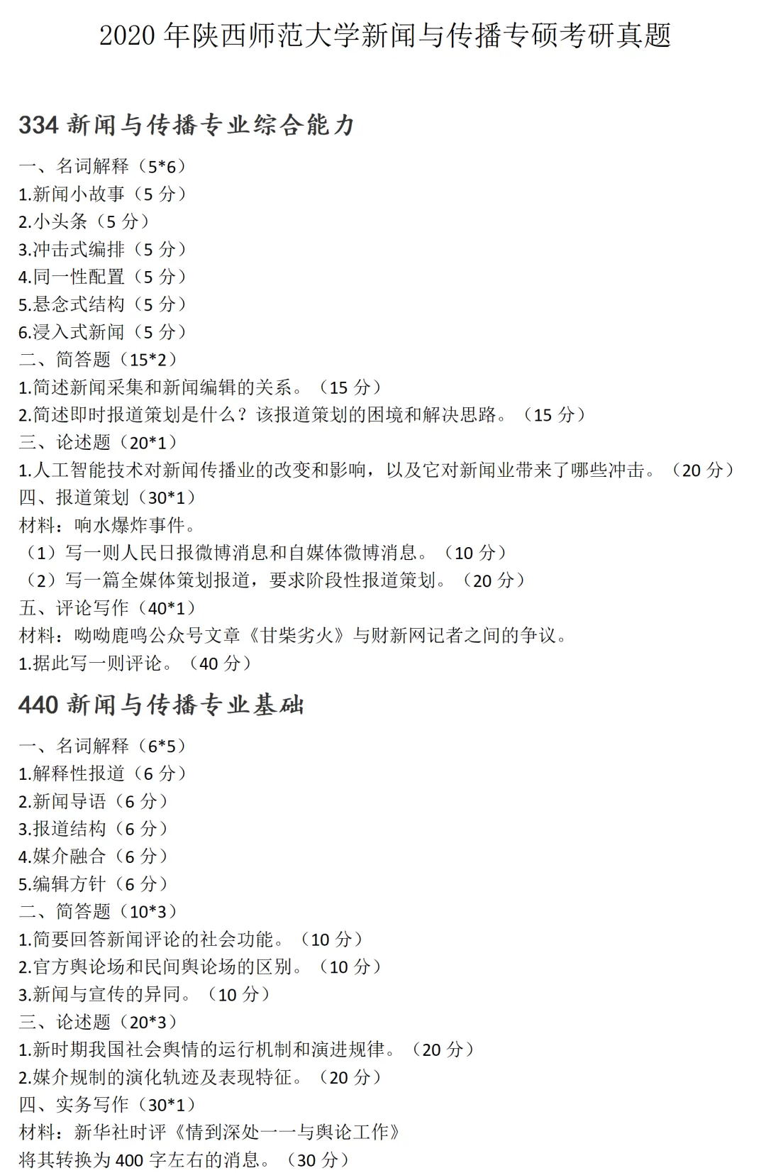 陕西师范大学新闻与传播考研真题2020