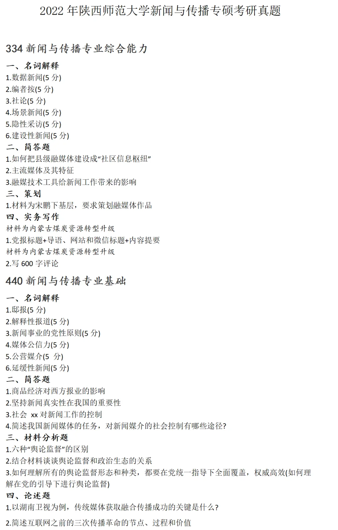 陕西师范大学新闻与传播考研真题2016-2025历年