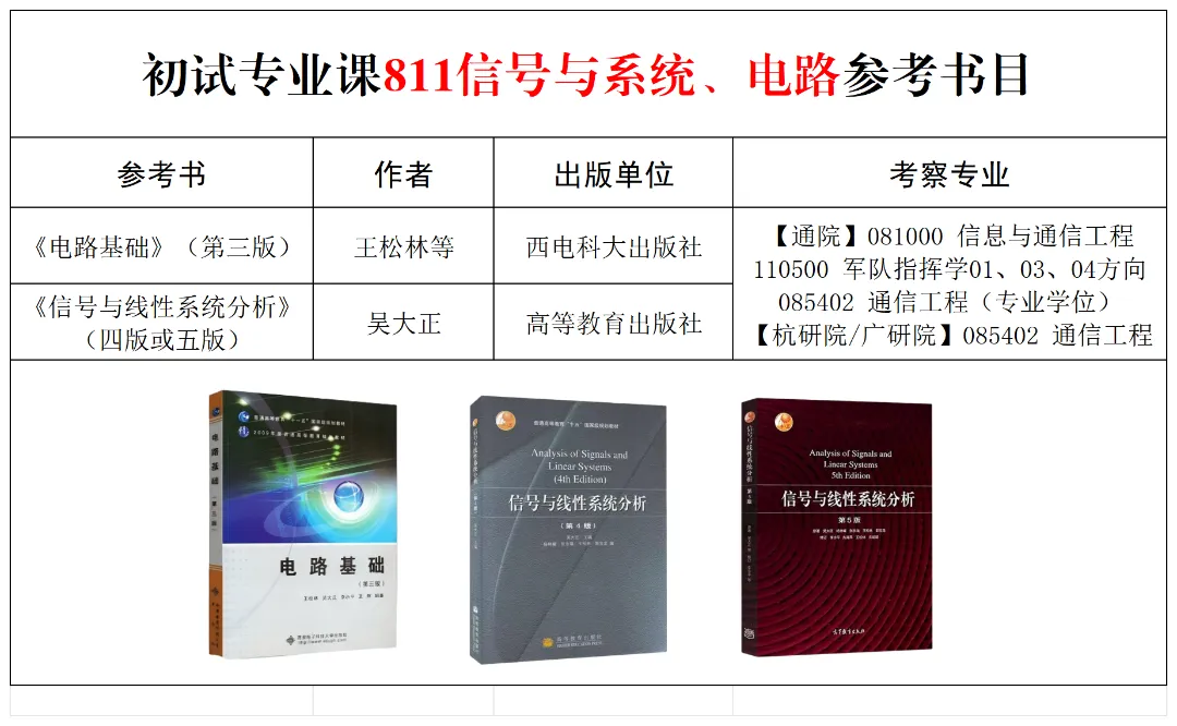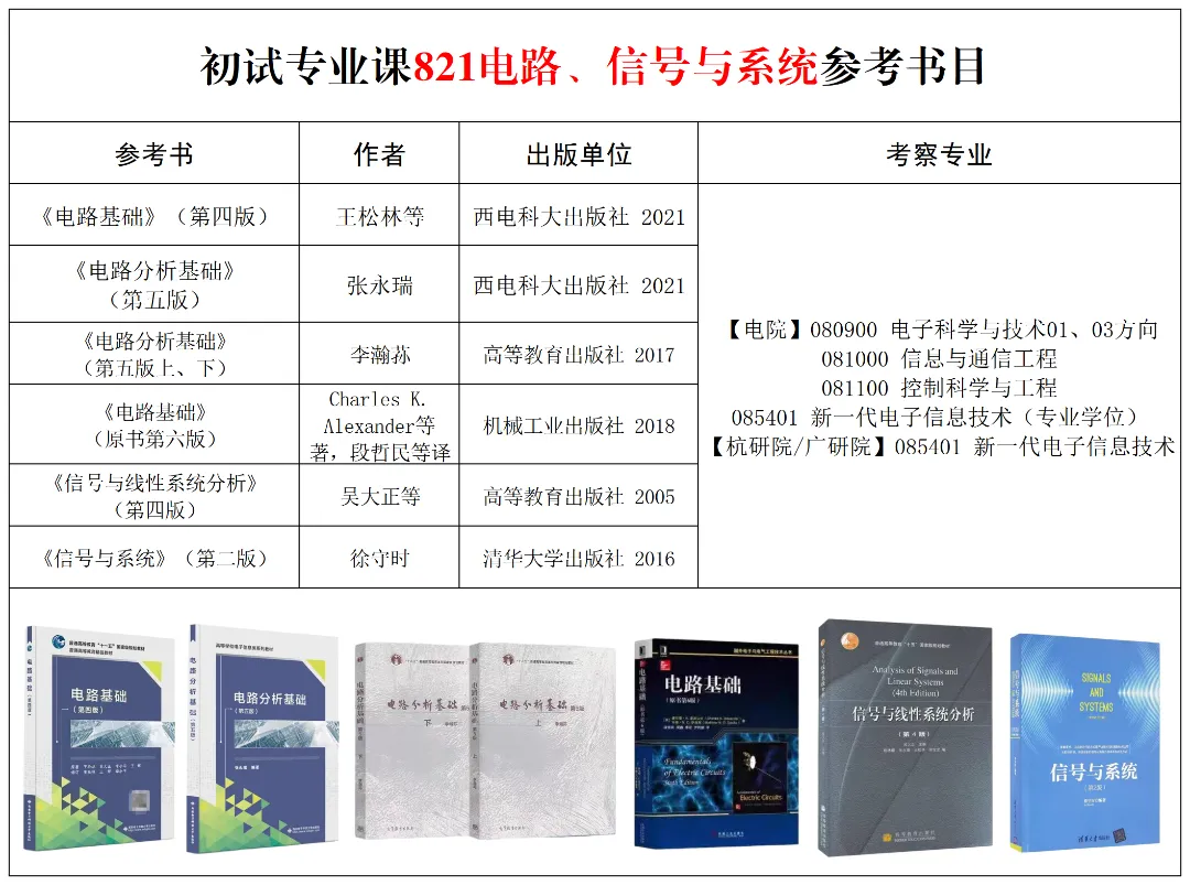首先,西电811和821专业课需要的教材一般是这两本——《电路基础》和《信号与线性系统分析》,以及还有一本非常重要的辅导书——张永瑞考试辅导书。