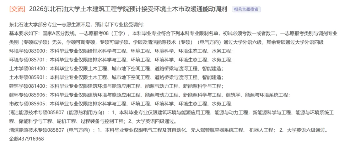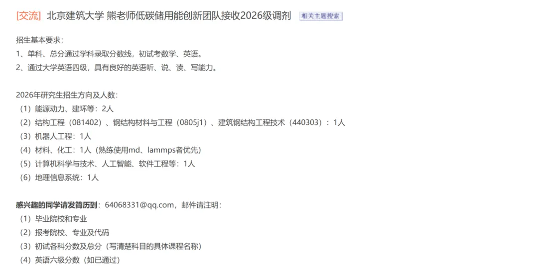 近日,网上有很多消息表明26考研调剂工作已经有确切提前的消息了,小林老师对此也是进行了相关整理总结,截至 2026 年 2 月 10 日,能动(能源动力 / 动力工程及工程热物理)考研调剂信息发布情况如下:正式官方调剂通知尚未大规模发布,目前主要以导师个人调剂预告和部分院校预调剂信息为主。以下是已确认发布相关信息的热门院校与渠道汇总。
