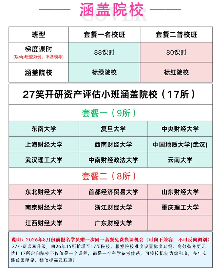 27资产评估小班课体系大升级!为了满足资产评估考研人深度内容需要,资产评估小班课全程班(即普通班)已闭班,只保留课时内容多且有单独资料内容的VIP和SVIP班型。详情内容扫描下方二维码添加学姐咨询报名。