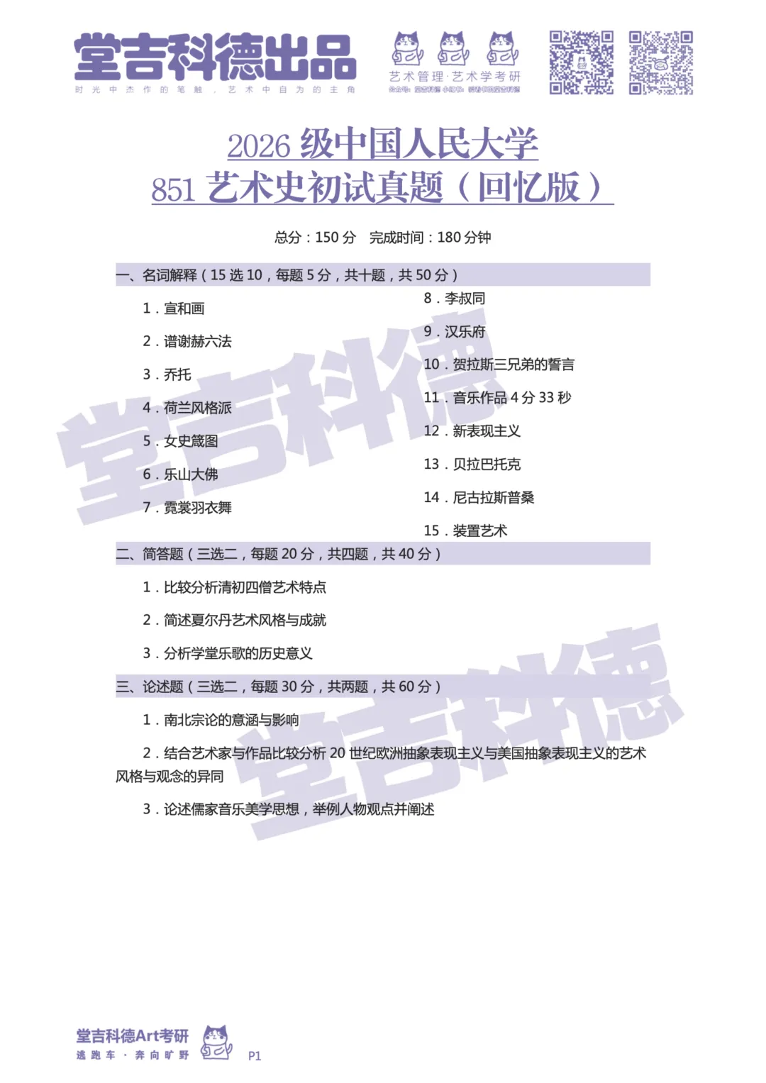 艺术史851真题题库