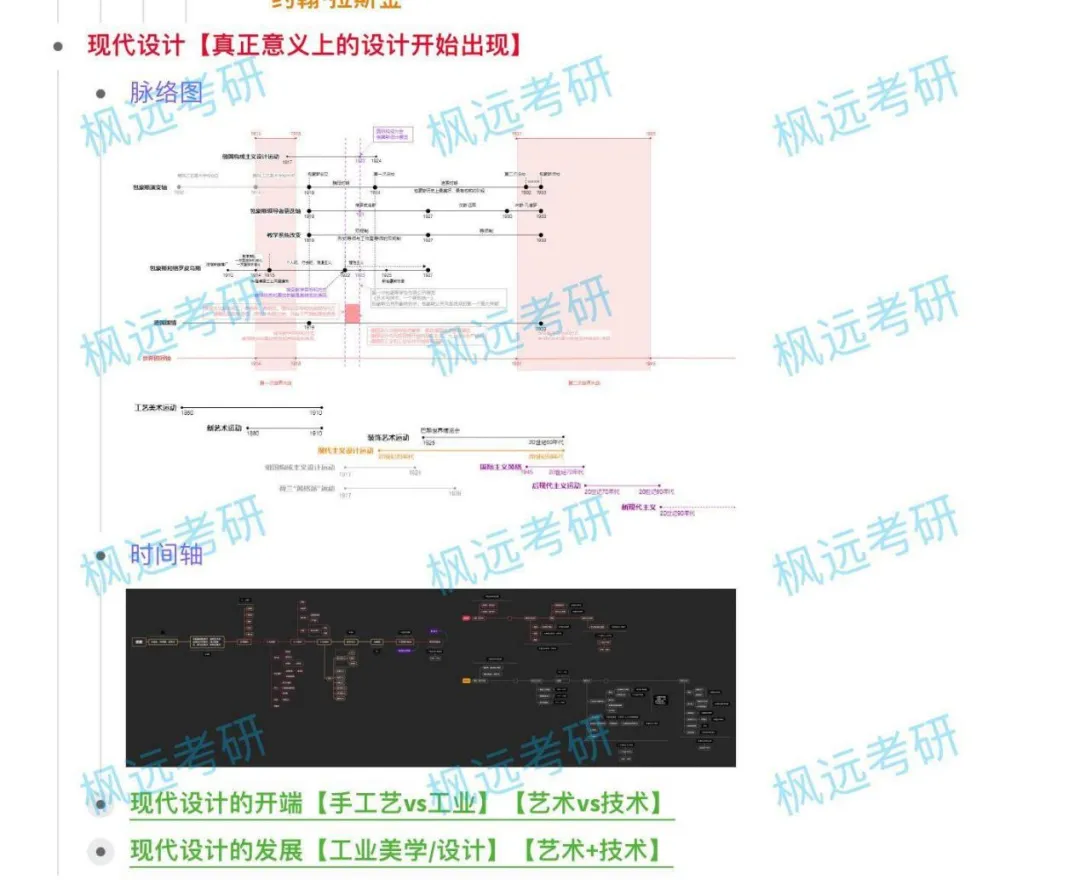 【基础班知识点】在设计学课程中专门设置了现代设计史的重点讲解,要求大家画清楚脉络,储备现代设计师及理论著作。图是学员笔记和课件截图