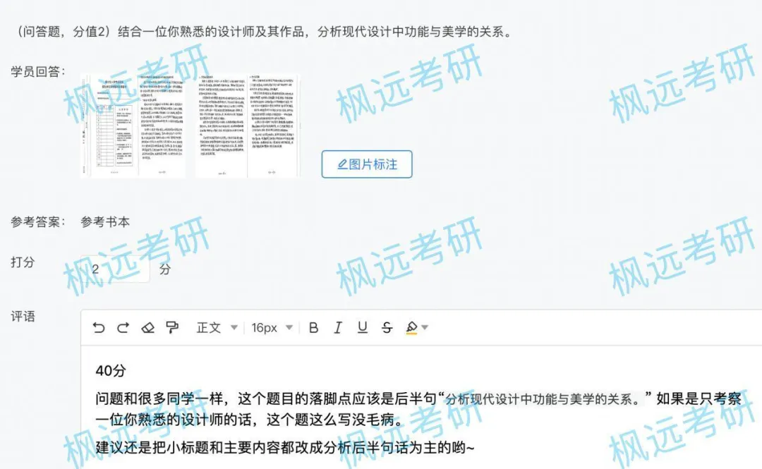 【押题卷1】押题卷中考察了结合一位熟悉的设计师及作品,分析现代设计中功能与美学的关系。强调要把落脚点放在对现代设计中功能与美学的分析上,结合此前学过的现代设计史的知识,可以很好的形成这道题的回答思路:功能派-形式派-功能与形式的调和。