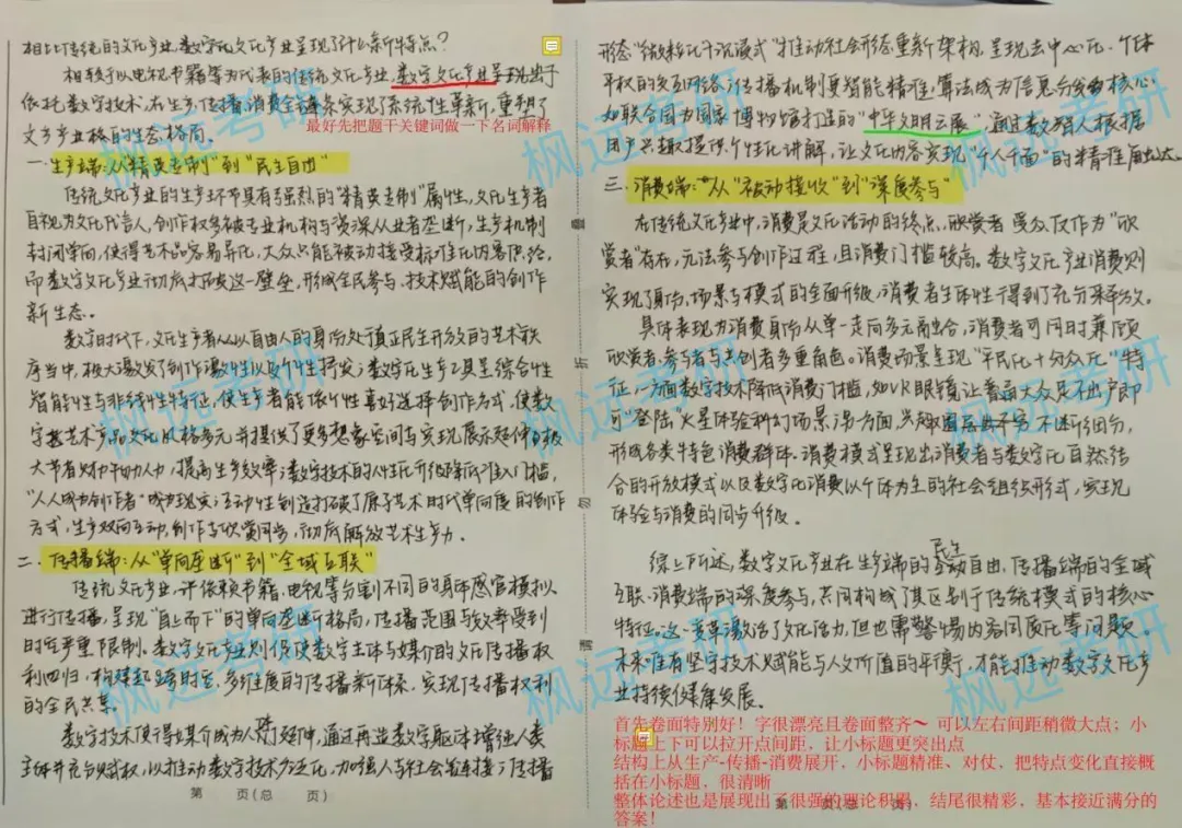 学习目标:攻克重难点与高频考点,实现跨科目知识衔接;强化论述题答题逻辑,掌握 “论点 - 论证 - 案例” 的完整答题结构;结合学术热点、政策动态(如 “人工智能 +”“文化元宇宙”)补充写作素材;通过专题复习与论文分析拓宽视野。