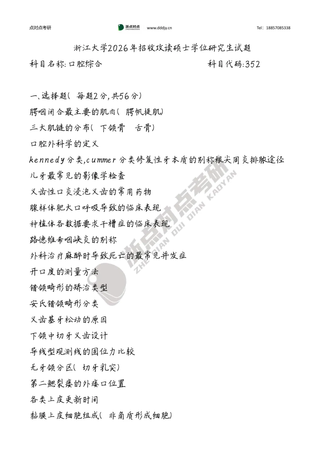 浙江大学2026考研352口腔综合真题回忆