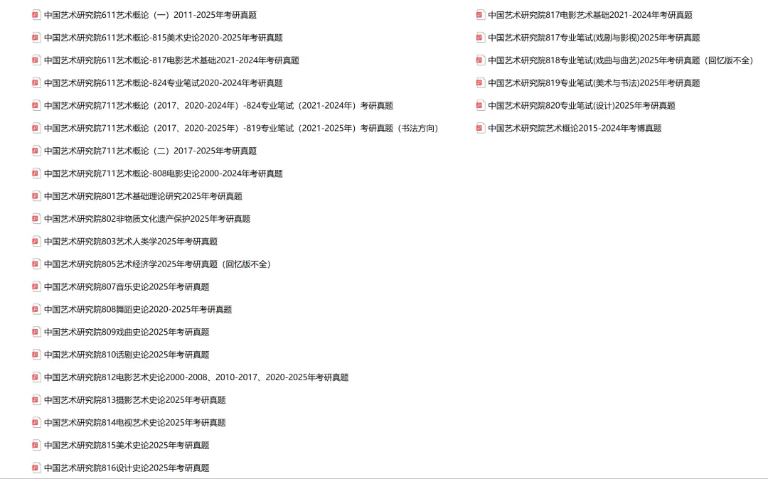 中国艺术研究院812电影艺术史论2000-2008、2010-2017、2020-2025年考研真题