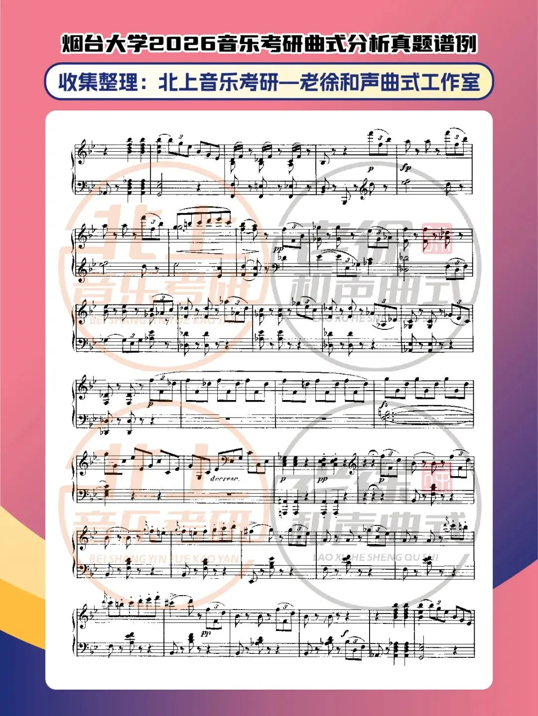 >烟台大学2026音乐考研曲式分析真题谱例|北上音乐考研—老徐和声曲式工作室收集整理