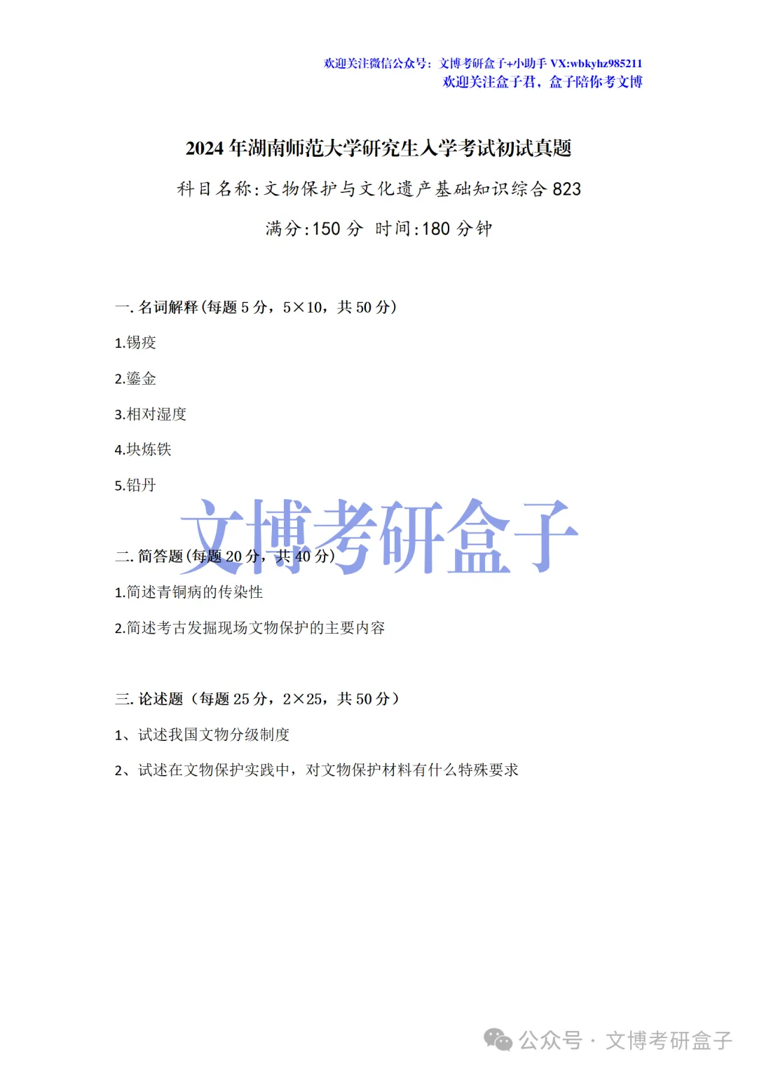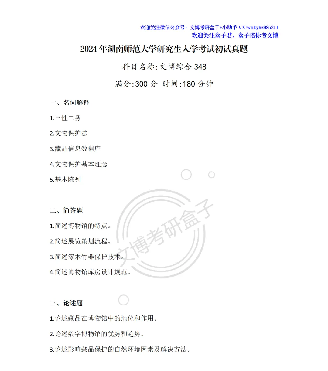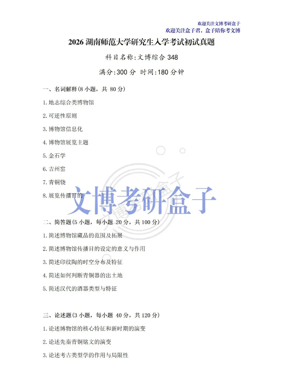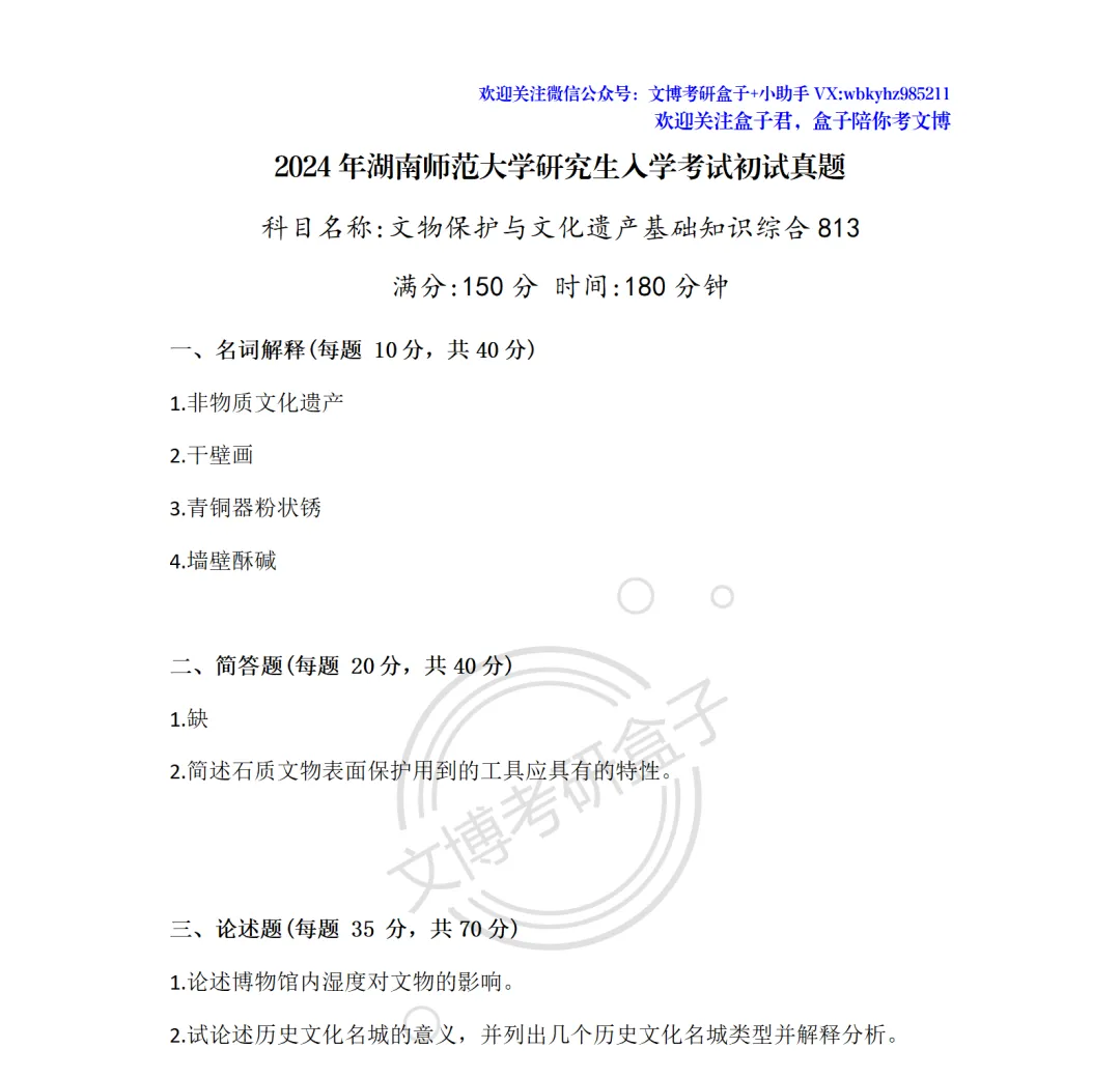考试的盒子学员和盒友们凭借记忆带出考场的,是真题的回忆版,因此可能会有些许偏差,也会有部分院校的题目不全,但基本一致、十分宝贵!希望27文博考研的同学好好收藏保存!