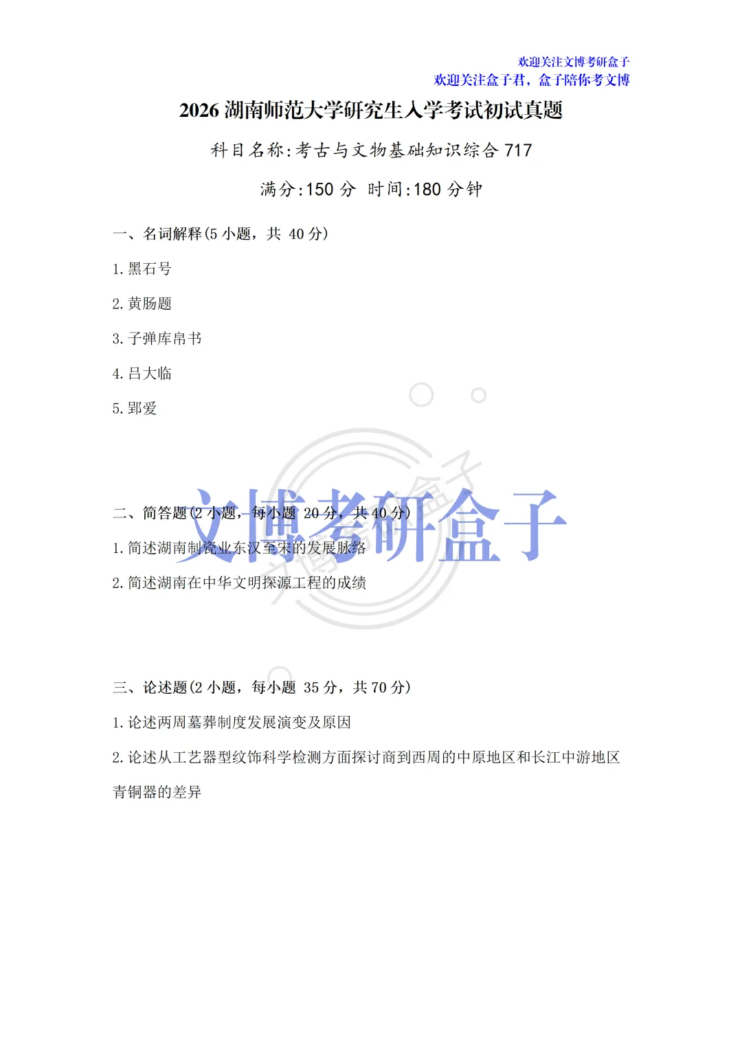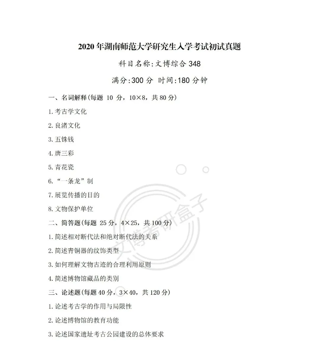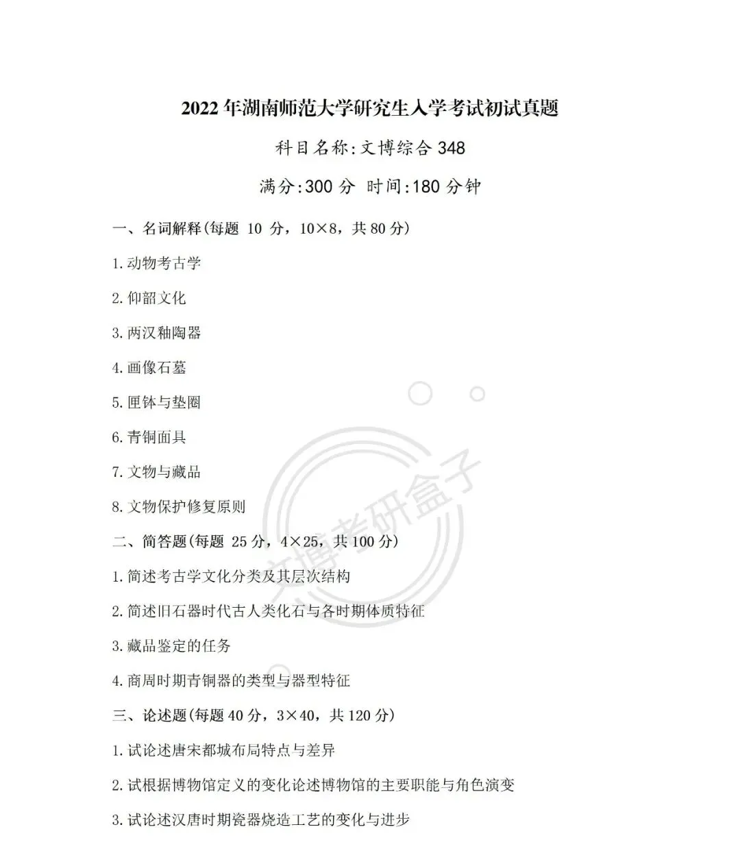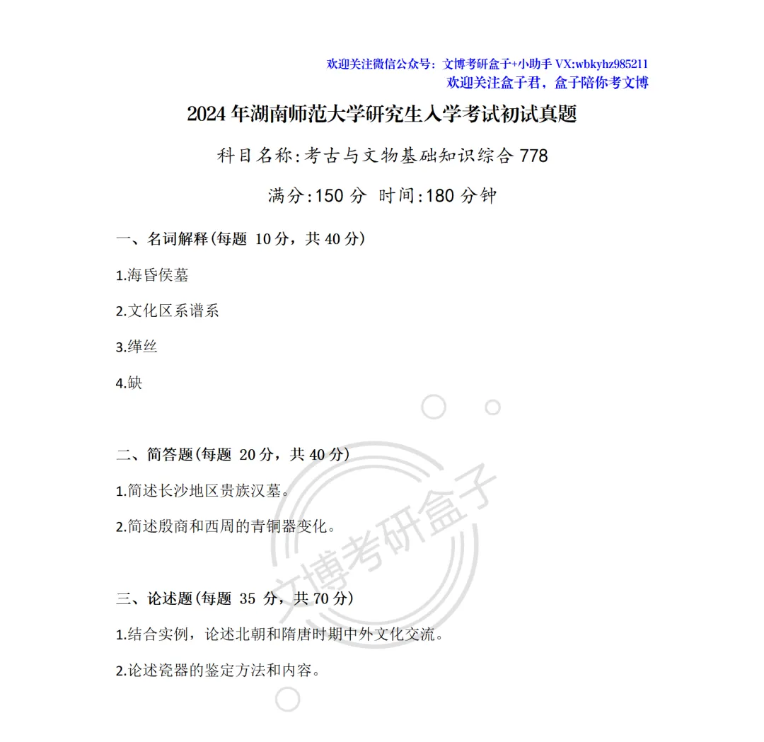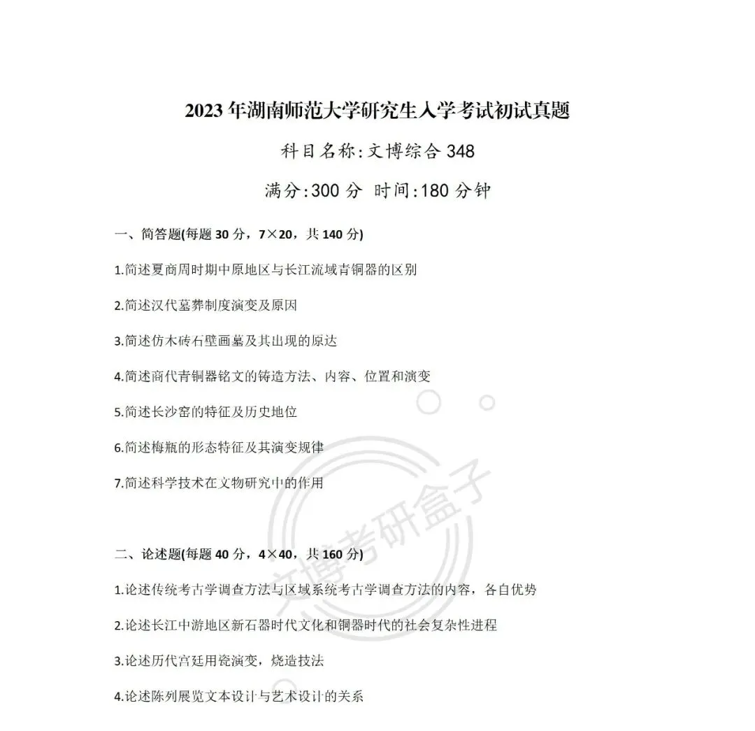 >文博考研 | 2012—2026年湖南师范大学『文物专业考研真题合集』