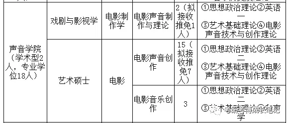 声音学院于2015年正式成立,其前身为1960年建立的电影工程系,以及1973年设立的录音系,是北京电影学院历史最为悠久的院系之一,迄今为业界培育了逾千名声音工作者。借助学校良好的电影教育环境和创作氛围,声音学院逐步在电影声音教育领域、乃至国内外相关专业领域中具备了无可比拟的优势和竞争力,代表了中国声音艺术教育的最高水平。未来,声音学院将继续秉承严谨治学、锐意进取的一贯作风,为行业输送更多具备系统知识和创新意识、熟练掌握专业技能的声音创作与制作人才。初试招生目录