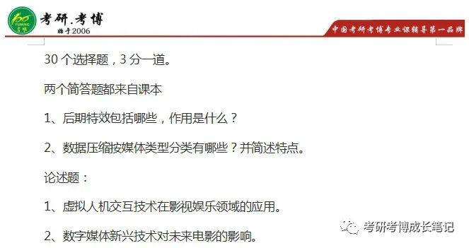 一、专业课分为影视基础和数字媒体两部分,关于影视基础这一门,考的大多是电影中的常识,因为我是本校生的缘故,这些东西大多在本科期间都有教授,而且在平时接活儿的过程中也有耳濡目染,我之前在剧组中做过摄影也做过美术部门和后期部门,考试中的很多东西在实践中都有接触,所以没有太下力气复习。